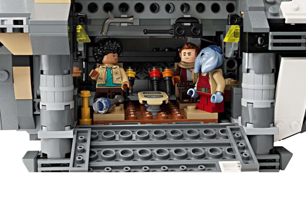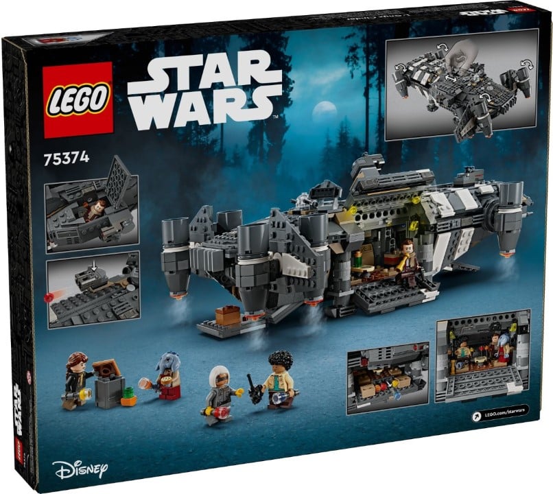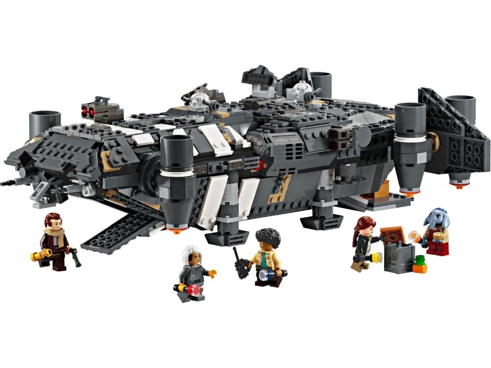 Die LEGO-Neuheit ist ein Frachter namens The Onyx Cinder, der die Setnummer 75374 trägt und aus insgesamt 1.325 Einzelteilen besteht. Die fünf mitgelieferten Minifiguren basieren auf den neuen Charakteren Jod, Wim, Fern, KB und Neel (von links nach rechts).