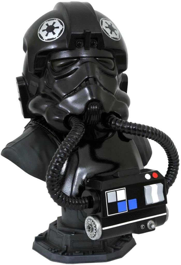 Watch out, Red Leader! This menacing TIE Fighter pilot is coming up on your six o’clock, and the newest Legend in 3D! Standing approximately 10 inches tall atop a mechanical-looking pedestal, this half-scale bust captures the iconic helmet design with detailed sculpting and paint applications. Limited to only 1,000 pieces, it comes packaged in a full-color box with a numbered certificate of authenticity. Designed by Joe Allard, sculpted by Oluf Hartvigsen.