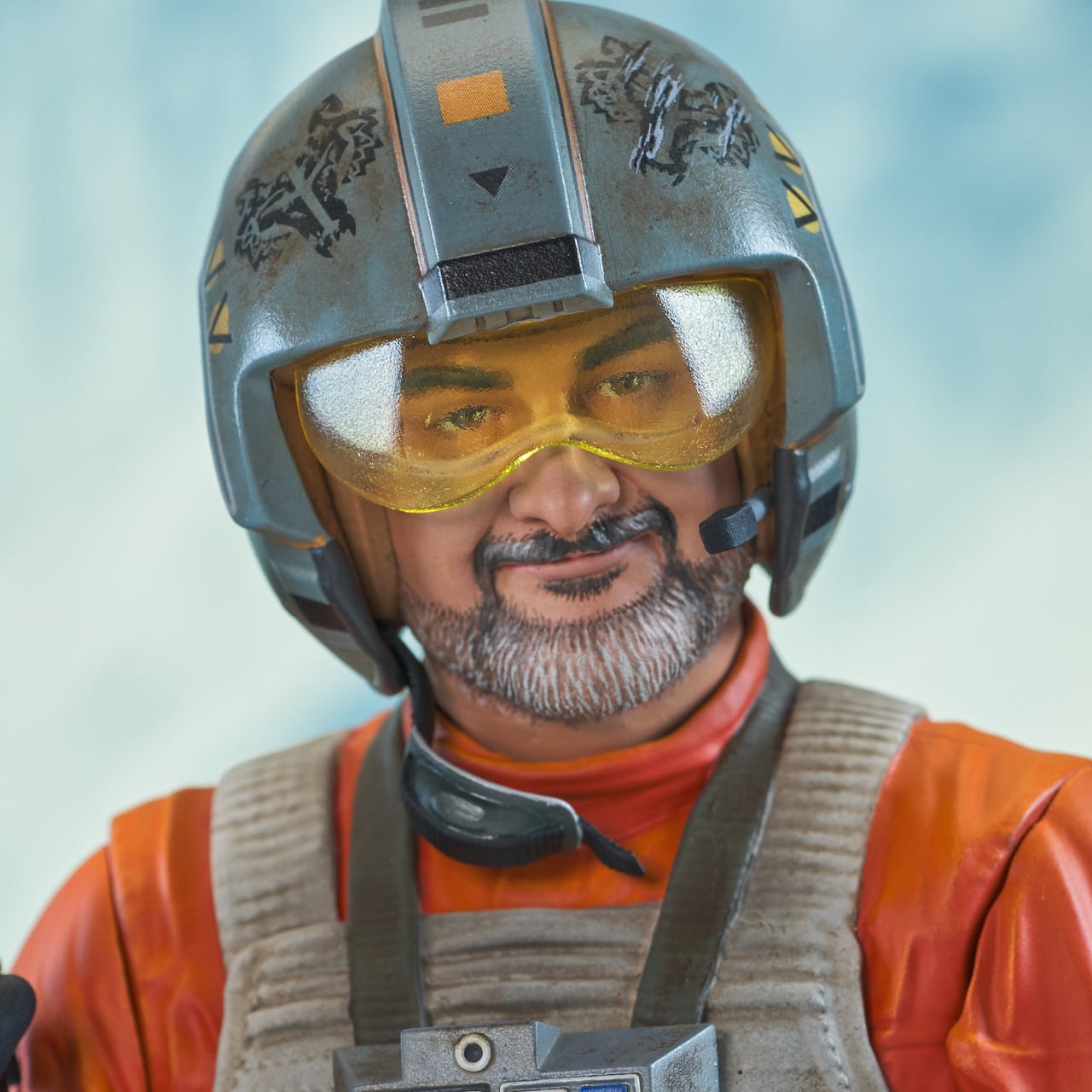 A Gentle Giant Ltd. release! He’s a veteran of the Rebellion against the Empire, and now serves as an X-Wing pilot in the New Republic. He’s Trapper Wolf, and he’s the newest 1/6 Scale Mini-Bust in the Gentle Giant Ltd line! Measuring approximately 6 inches tall (7 inches with blaster), this daring defender of the Outer Rim is limited to only 750 pieces, and comes packaged in a full-color box with a numbered certificate of authenticity.