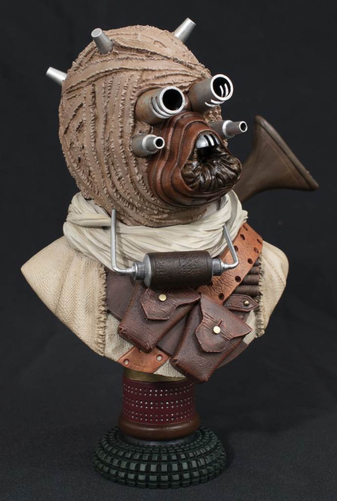 A Gentle Giant Ltd. release! They’re legends on Tatooine, and now a Tusken Raider is the next Legend in 3D! This approximately 10-inch, half-scale bust depicts one of the sand people in his traditional garb, with a rifle slung on his back, atop a base fashioned after a gaderfffii stick. Limited to only 1,000 pieces, each highly detailed bust is hand-painted and comes packaged in a full color box with a hand-numbered certificate of authenticity.