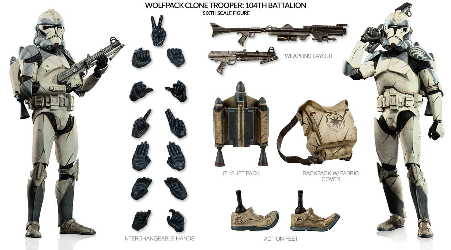 Inspired by Sergeant Sinker in Star Wars: The Clone Wars, Sideshow Collectibles is proud to introduce the Wolfpack Clone Trooper: 104th Battalion Sixth Scale Figure from our Militaries of Star Wars collection.