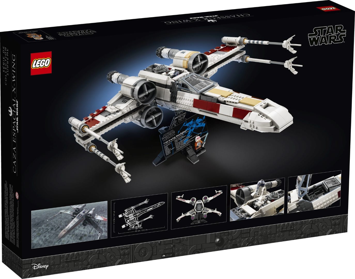 Der X-Wing Starfighter ist 55 cm lang und steht auf einem baubaren Ständer mit Infotafel. Auf dieser Tafel sind die technischen Daten des X-Wings aufgelistet. Die LEGO Minifigur Luke Skywalker (im neuen Design ab Mai 2023) mit Lichtschwert vollendet das Ausstellungsstück.