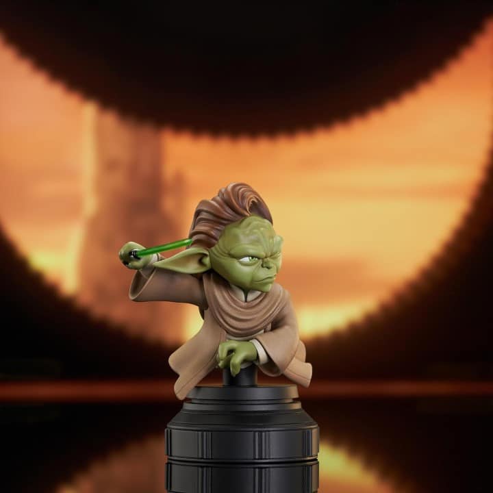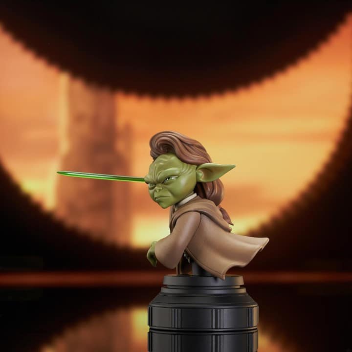 Diamond Select Toys presents one of the most mysterious Jedi Council members! This replica of Yaddle, Yoda’s green-skinned female counterpart, has her green lightsaber ignited and is based on her appearance in the Tales of the Jedi animated series on Disney+. She measures approximately 4 1/2-inches tall and features detailed sculpting and paint applications. Limited to only 1,000 pieces, the Star Wars: Tales of the Jedi Animated Yaddle Bust comes packaged with a numbered certificate of authenticity in a full-color window box.