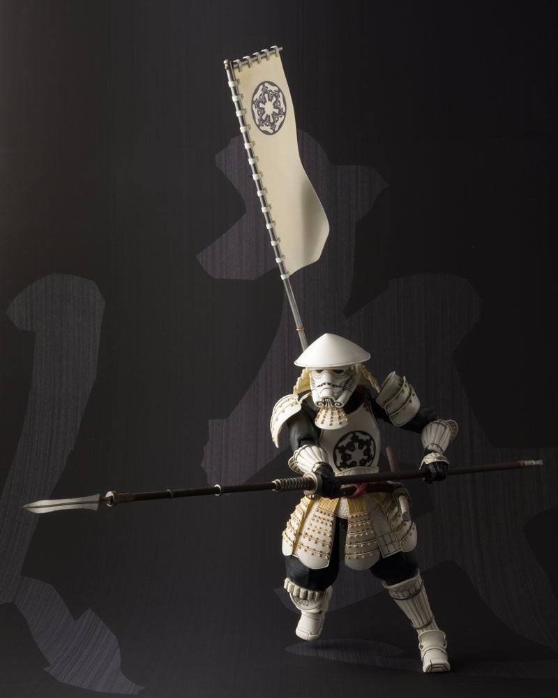 The Meisho Movie Realization series is back to complete your Star Wars collection with an exquisitely rendered Stormtrooper, designed to evoke an ancient Japanese foot soldier. Sculpted by the legendary Takayuki Takeya, the set includes eight pairs of optional hands, a spear, a sword, and a battle pennant.