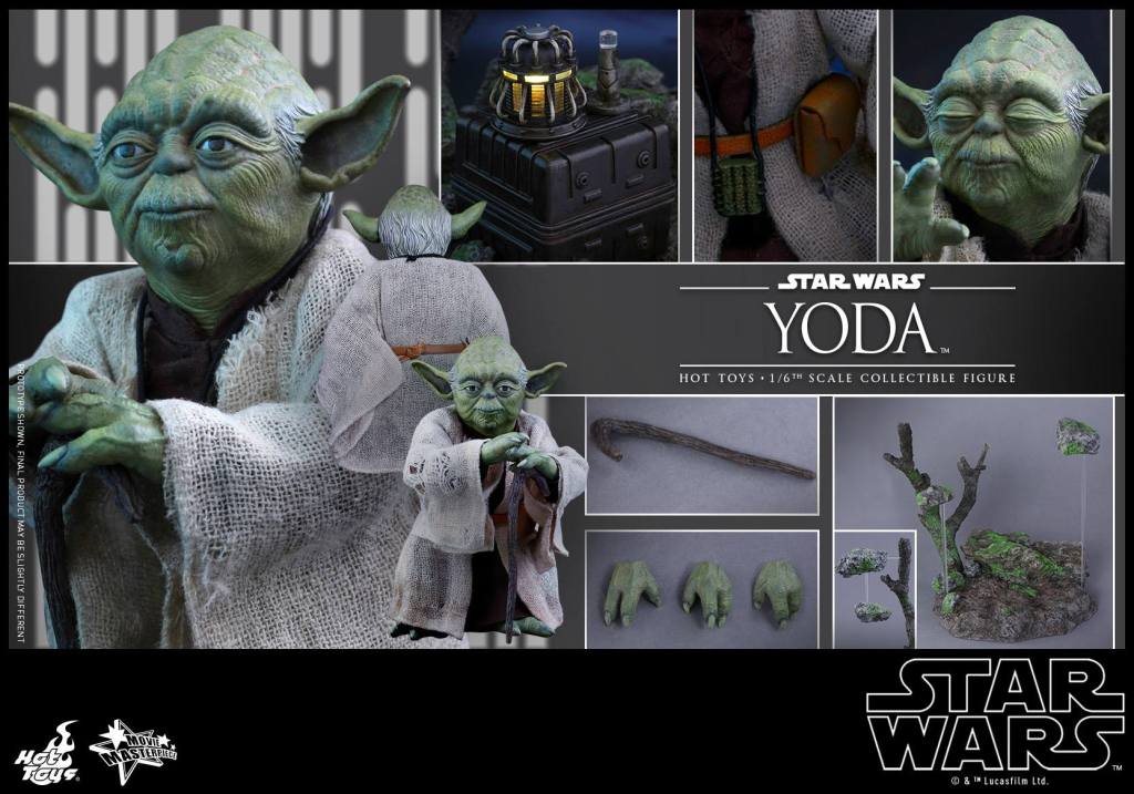 The highly-accurate collectible figure is specially crafted based on the image of Yoda in Star Wars: Episode V The Empire Strikes Back. It features two newly developed head sculpts, specially developed body, finely tailored costume, a range of detailed accessories including a cane, crate container, small lamp, LED-light up power unit, and Dagobah diorama figure base with rocks.