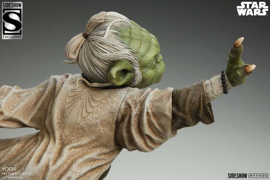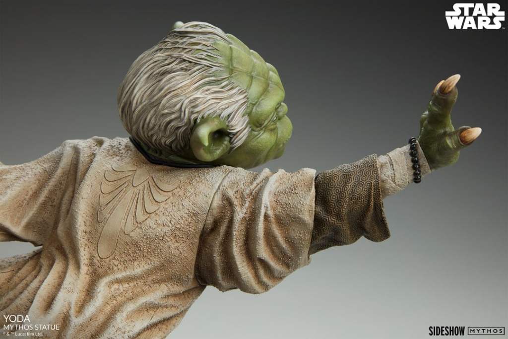As a collection, Sideshow’s Mythos series are fine art collectibles that allow the collector to imagine what could have been, but maybe never was. Myths meant to be initiated by the eye and completed by the mind. Witness a master rising! The Yoda Mythos Statue measures 17” tall and 11.75” wide, capturing a glimpse of the agile and enigmatic alien during his younger days as a galactic peacekeeper. 900 years old he is not, as he leaps through the smoldering, shattered wreckage of a ship’s hull with ease in this gravity-defying pose. His lightsaber™ is extended and his arm is outstretched as the fierce battle continues. Though short of stature, Yoda proves that even the smallest being can make the biggest impact through the living Force. The polystone Yoda Mythos Statue is fully sculpted with dynamic motion throughout the piece to emphasize his power and adherence to the Jedi creed. His layered tan and brown robes feature detailed textures and accents that add a richness to hero’s traditional garb. He also wears his signature blissl™ necklace and a set of beaded bracelets on his wrists. This imaginative look at the legendary Yoda’s life is a must-have for Star Wars fans of any generation.