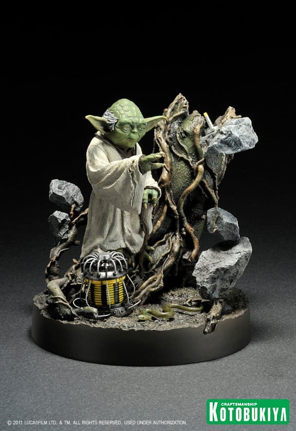 Highly sculpted details include a Dagobah-inspired diorama base.