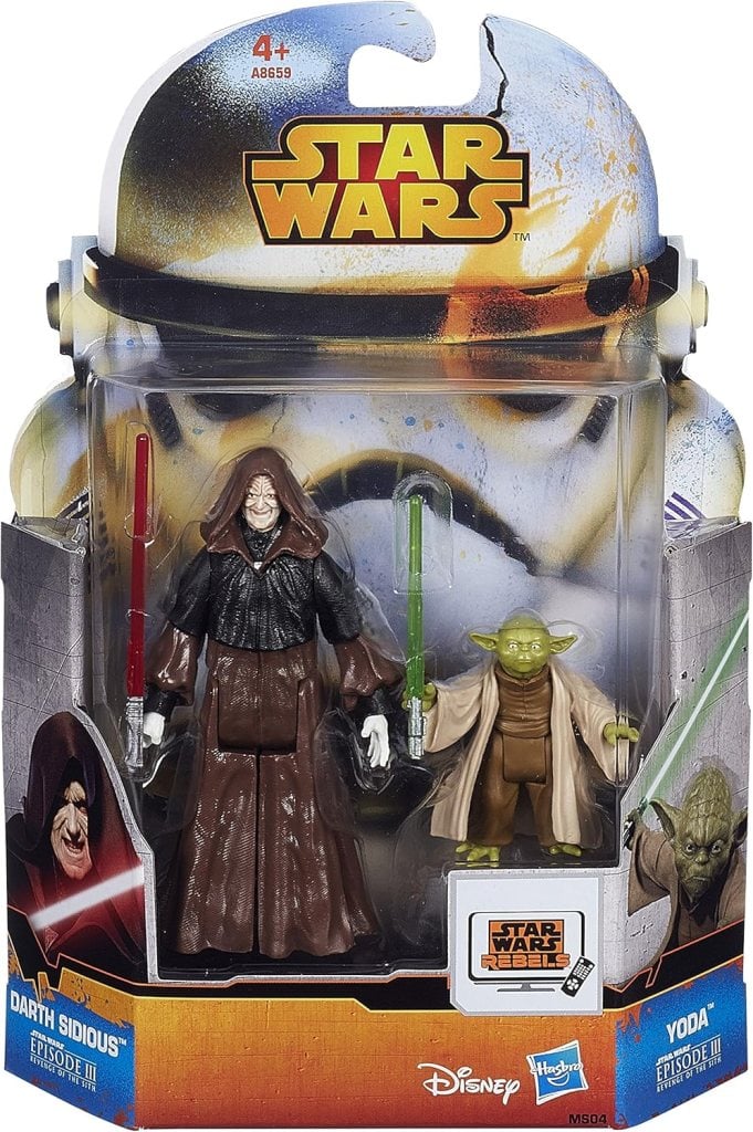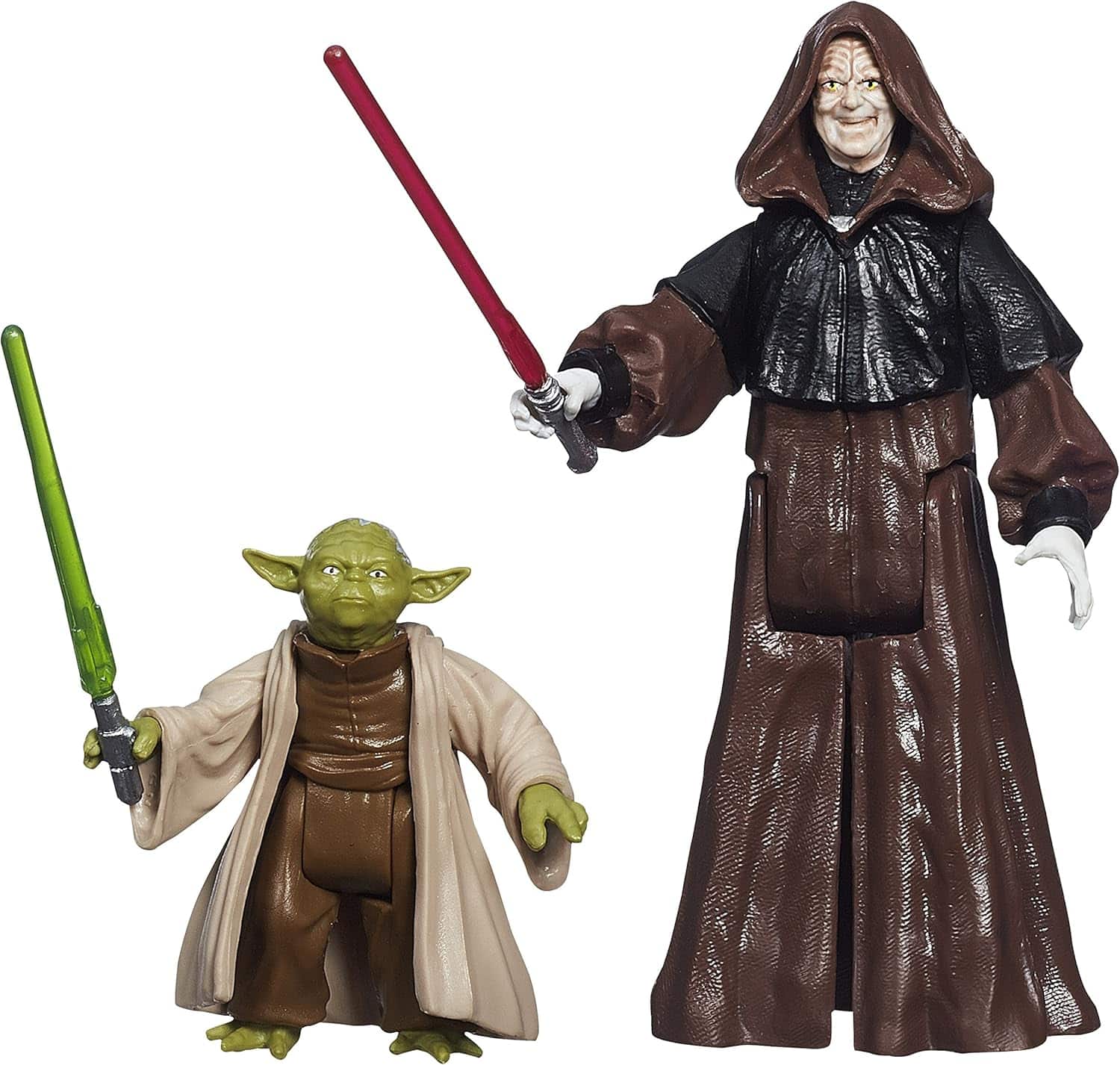 Jedi Master Yoda discovers that Chancellor Palpatine is really the Sith Lord Darth Sidious, leading to an explosive duel in the Senate Chamber on Coruscant. Their intense battle tears apart the chamber in the final hours of the once-great Republic. Commemorate amazing Star Wars missions with the Mission Series figure packs! This Mission Series figure set includes 2 figures that re-create the enmity between Yoda and Darth Sidious. Both figures are armed with lightsabers for their epic duel in the Senate chamber! Re-enact your favorite scenes from the Star Wars epic or create brand new ones with this Mission Series figure set!