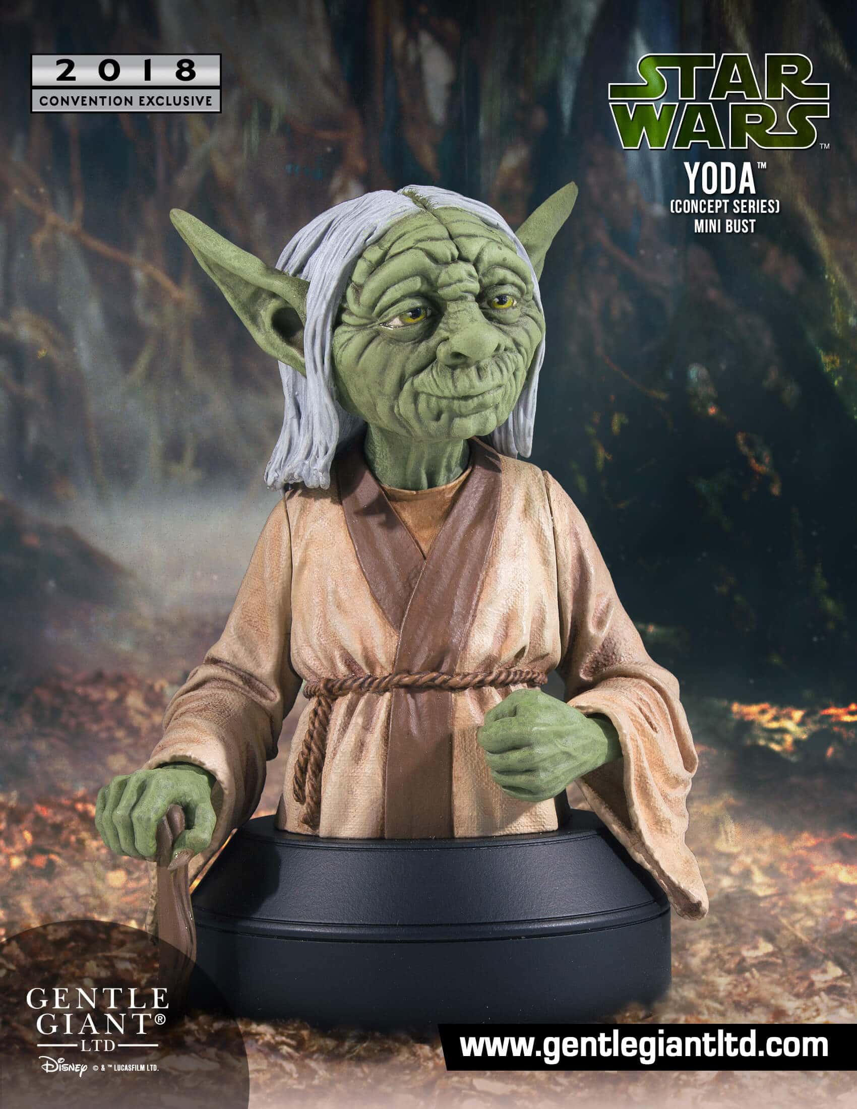 Continuing our long running line of convention exclusive mini busts based on the early concept art of the original Star Wars Trilogy, Gentle Giant Ltd. is proud to unveil the 2018 Yoda (Concept Series) Mini Bust.