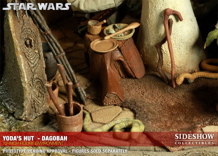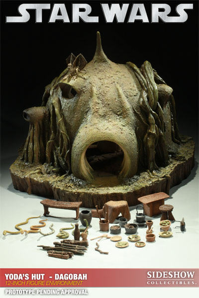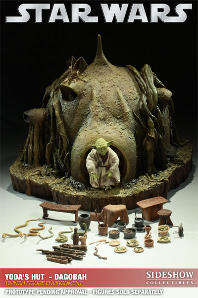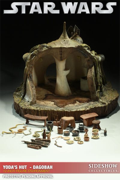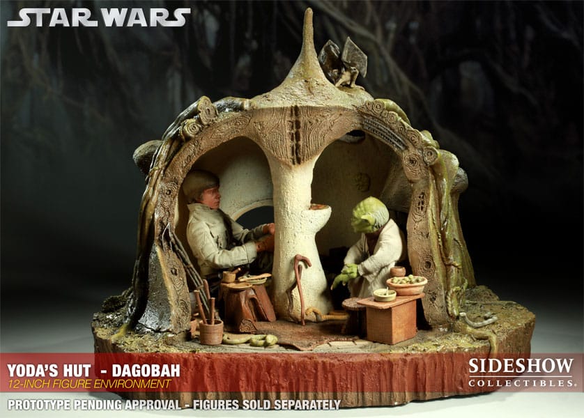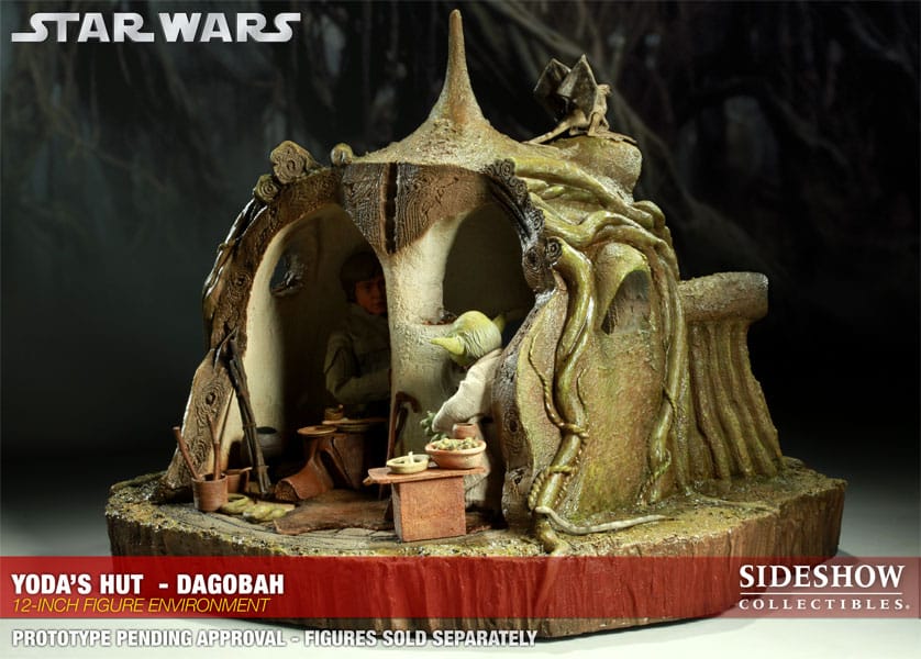 Sideshow Collectibles is proud to present the Yoda’s Hut – Dagobah 12-inch Figure Environment, the latest addition to Sideshow’s award-winning Star Wars Collectible line. Depicting the Jedi Mentor’s simple home in the hidden jungles of Dagobah, each piece is individually painted and finished, each with its own unique quality and detail that is the trademark of a handcrafted Sideshow Collectibles product. The Yoda’s Hut – Dagobah 12-inch Figure Environment is an outstanding addition to any Star Wars collection, the perfect compliment to your Jedi Master scene.