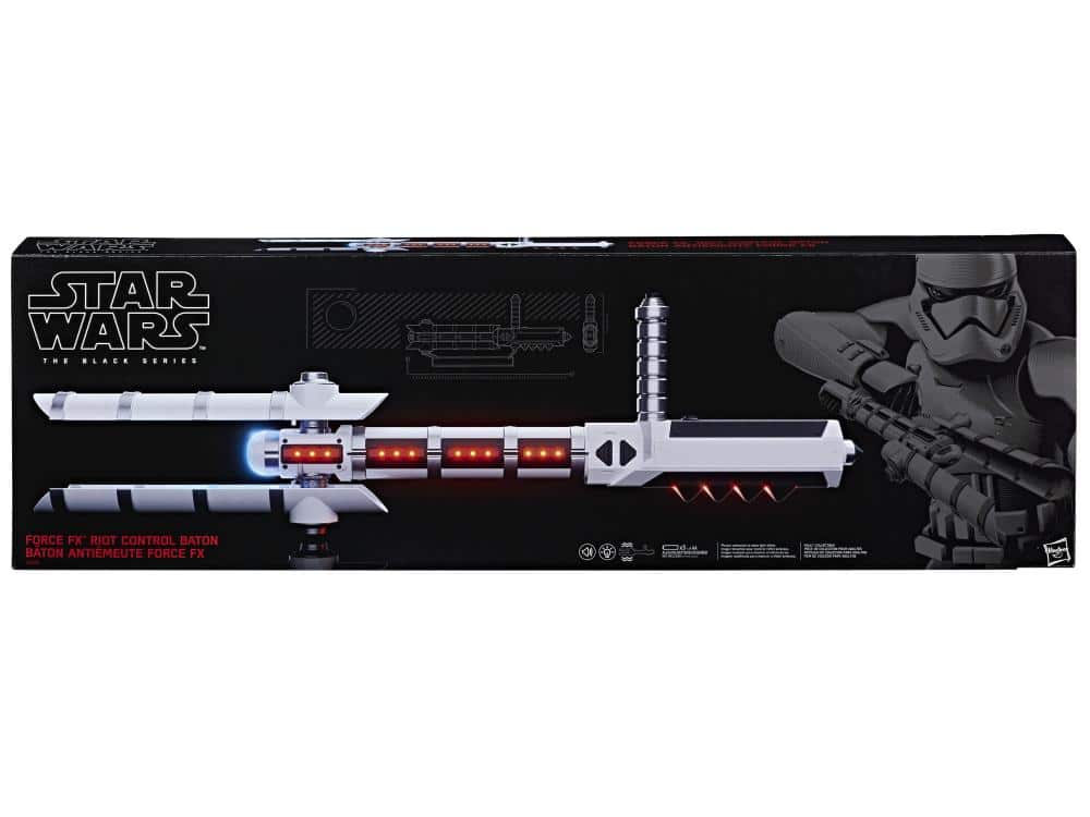 Bereits im Februar stellte Hersteller Hasbro ein brandneues Riot Control Baton für die beliebte Force FX-Reihe vor. Das Baton kennt man aus „Star Wars: The Force Awakens“ wo es von Sturmtruppler FN-2199 geschwungen wird. Die schicke Hasbro-Variante verfügt über Licht- und Soundeffekte sowie einen Schwung-Mechanismus.