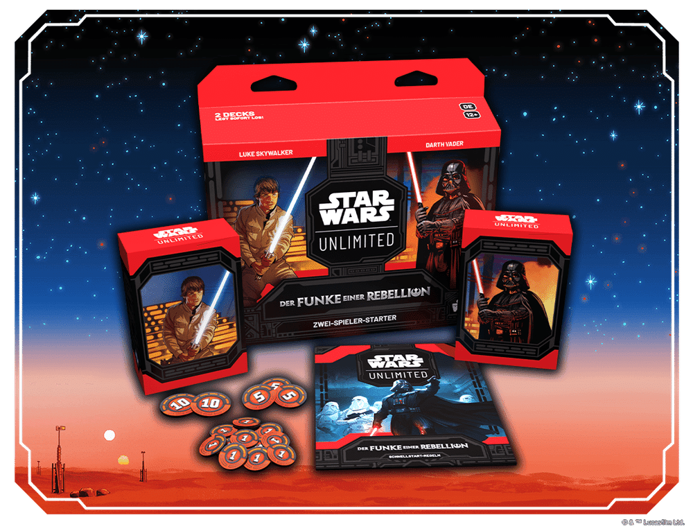 Starte deine Star Wars: Unlimited-Sammlung mit einem Zwei-Spieler-Starter, der zwei vollständig aufgebaute, spielfertige Decks enthält, die sich perfekt zum Erlernen des Spiels eignen. Enthält außerdem vollständige Playsets mit 10 Karten, die exklusiv in diesen Starterdecks enthalten sind!