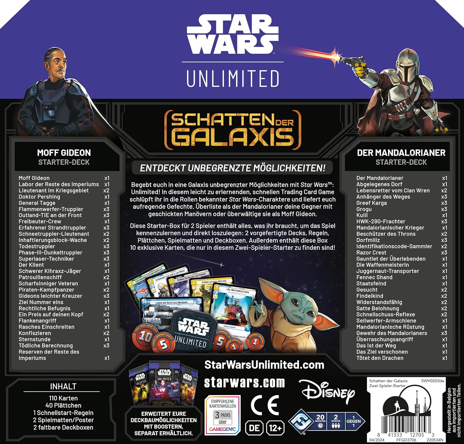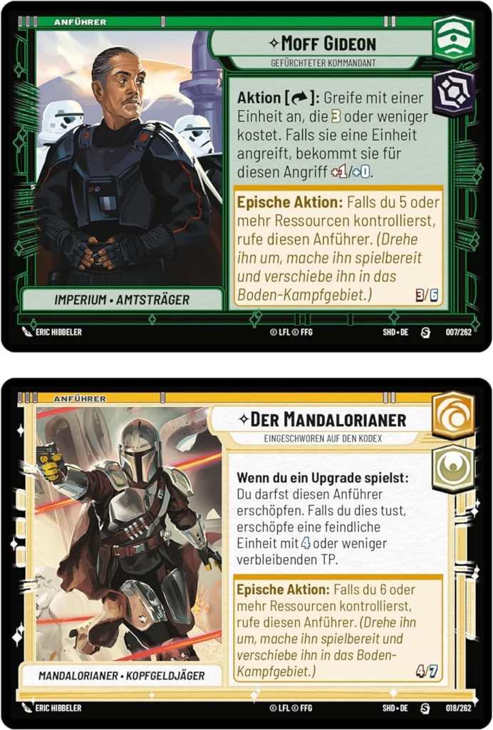 Der Zwei-Spieler-Starter enthält zwei spielfertige Decks, mit denen du und ein Freund direkt in das Spiel eintauchen und die Regeln lernen könnt. Überliste deine Feinde als der Mandalorianer oder überwältige deine Gegner als Moff Gideon!
