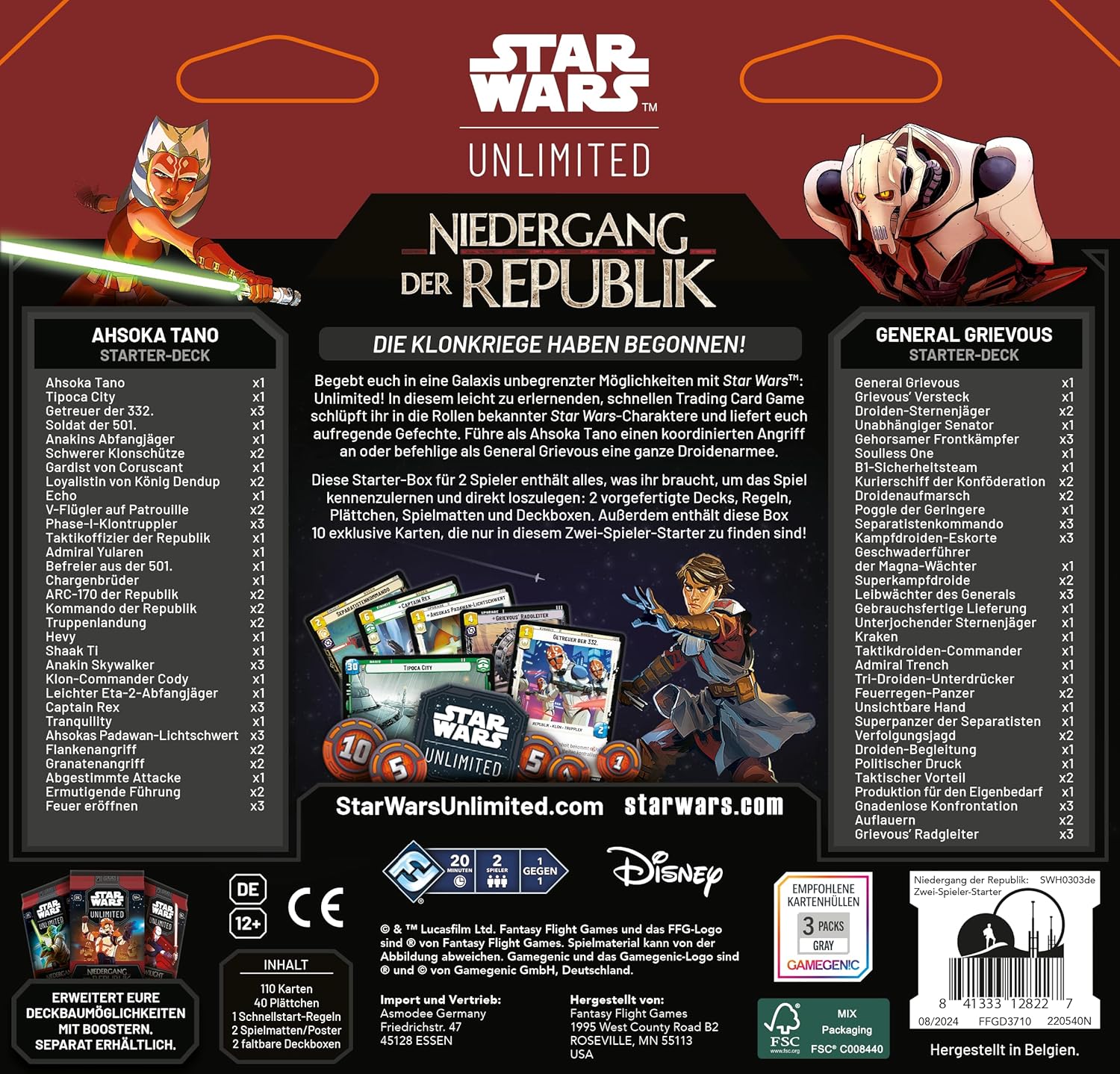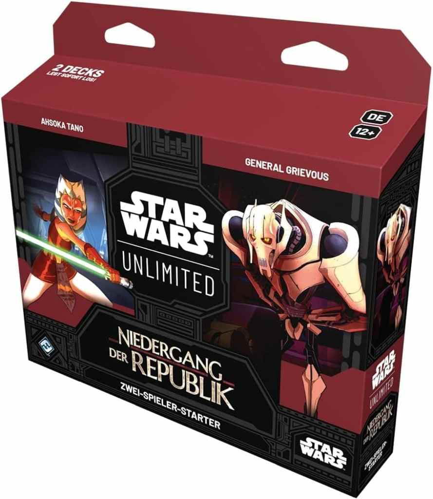 Im Zwei-Spieler-Starter findest du zwei komplett vorgebaute, spielfertige Decks für dich und einen Freund, mit denen ihr das Spiel erlernen könnt. Führe als Ahsoka Tano einen koordinierten Angriff an oder befehlige als General Grievous Armeen von Droiden!