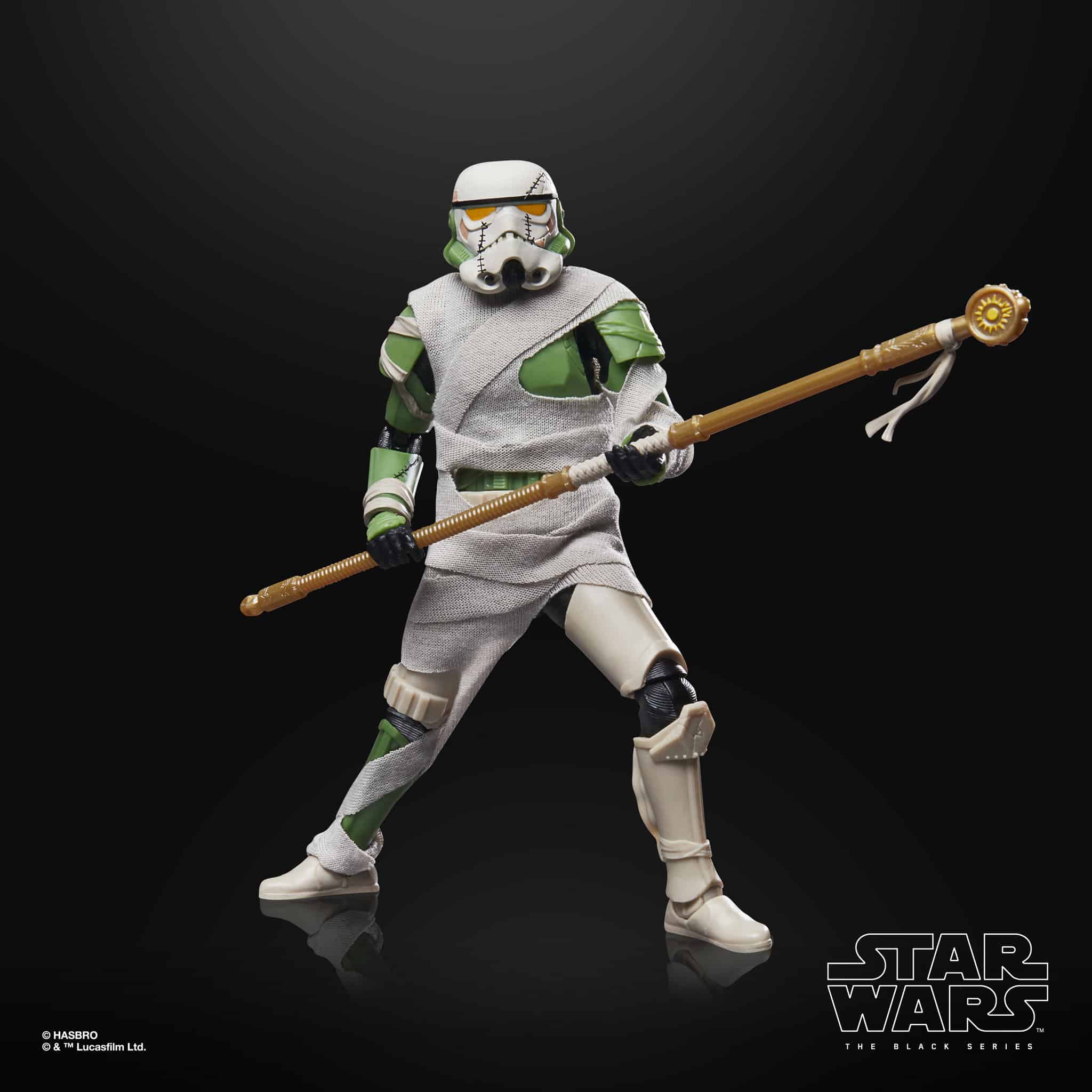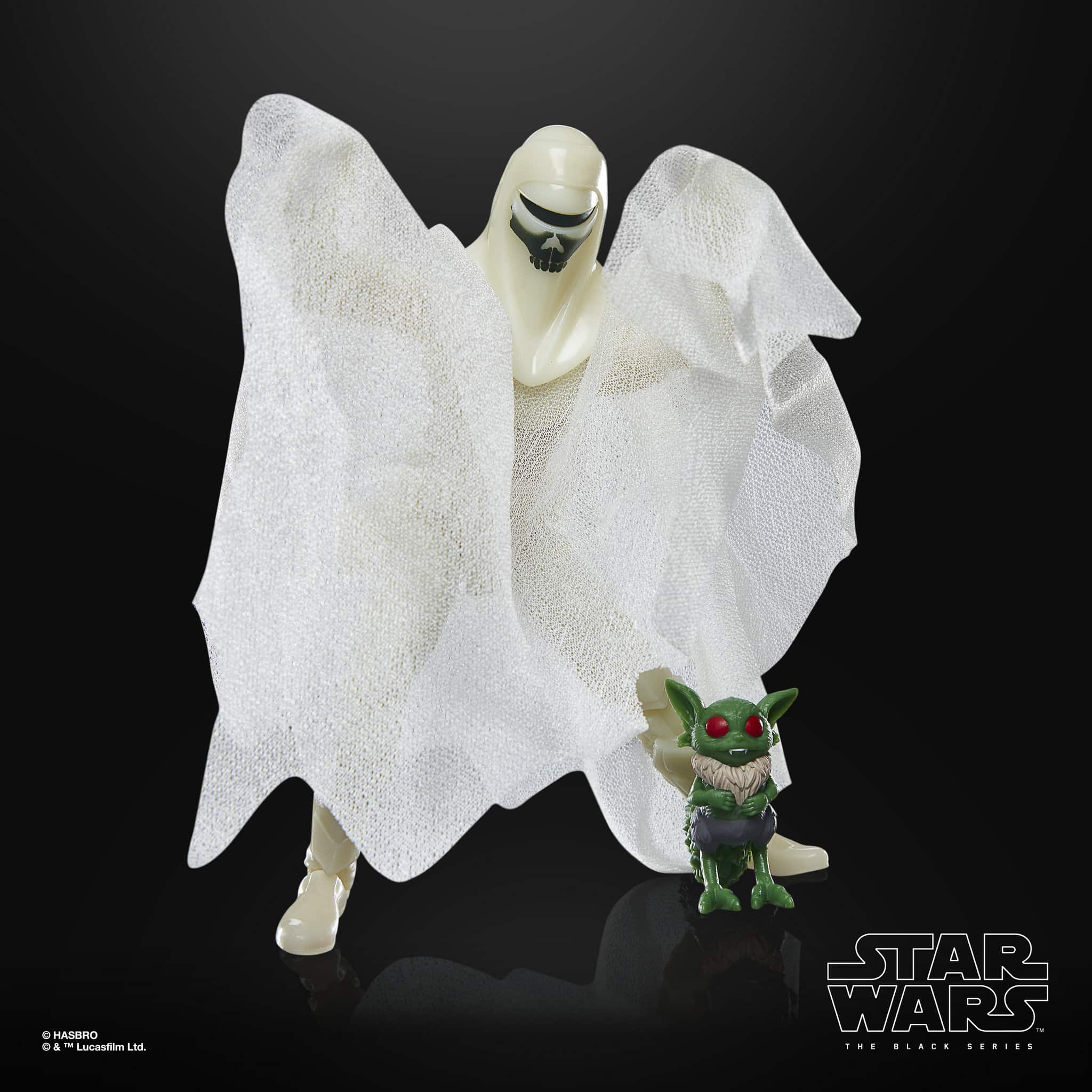 Zusätzlich dazu wurden auch drei Neuheiten für die kontroverse Halloween-Unterreihe der 6″ Black Series vorgestellt. Dabei handelt es sich um Star Wars-Figuren, die im gruseligen Gewand und mit speziellen Features veröffentlicht werden. Der neu angekündigte Imperial Royal Guard kommt zum Beispiel als heller Geist daher und leuchtet sogar im Dunkeln. Der Night Trooper trägt grüne Akzente und einige echte Stofffetzen, um einen Mumien-Look zu erreichen und die Dathomir Witch reitet auf einem eigenen Hexenbesen.