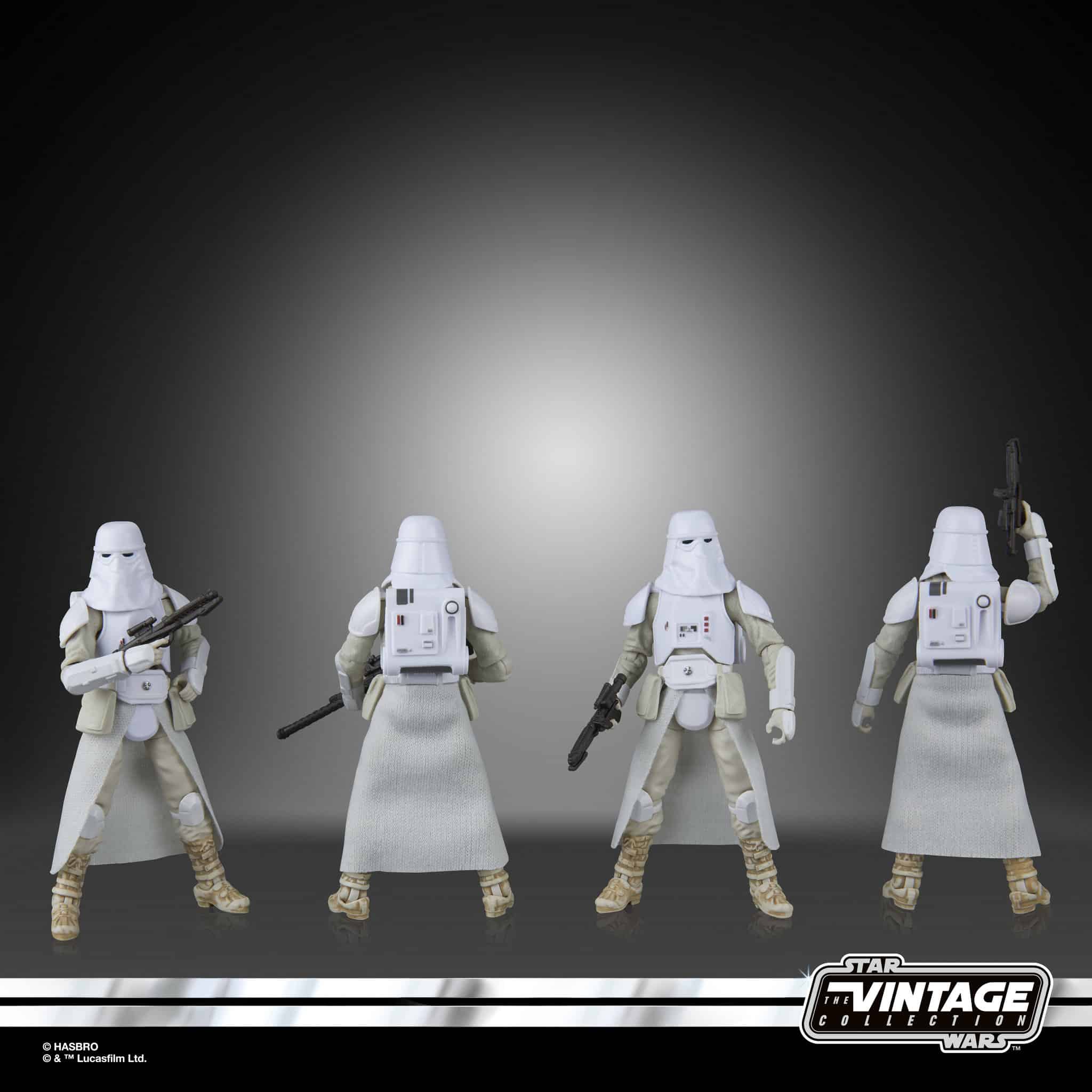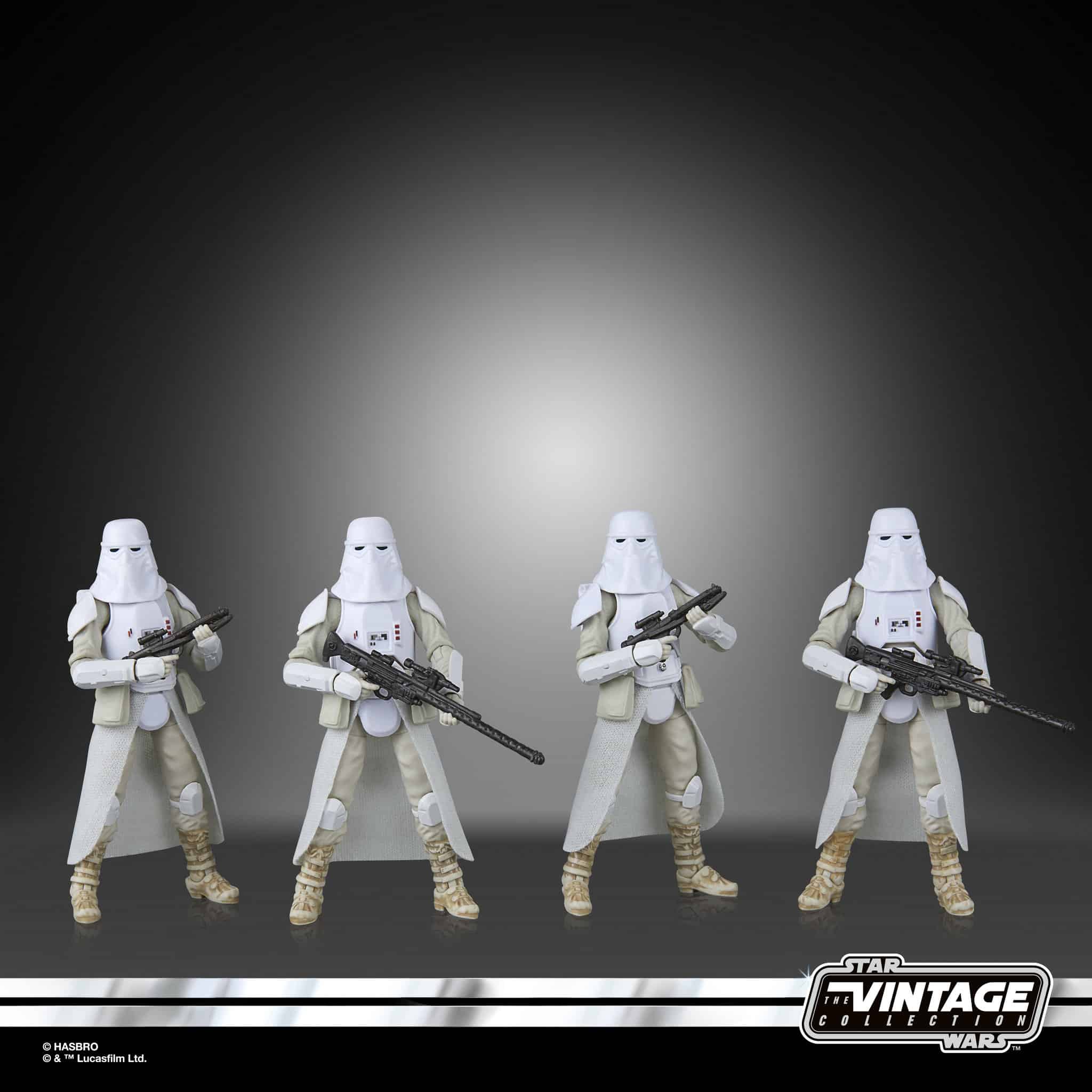 Obwohl es, wie eingangs erwähnt, nur zwei Star Wars-Neuheiten für die beliebte Vintage Collection gab, können sie aber trotzdem mit dem Black Series-Aufgebot mithalten. Im kleineren Maßstab 1:18 wurde nämlich ein neues Snowtrooper 4-Pack für die Army Builder-Unterreihe vorgestellt und erstmals auch ein schicker Darth Vader’s TIE Advanced samt Vader-Actionfigur.