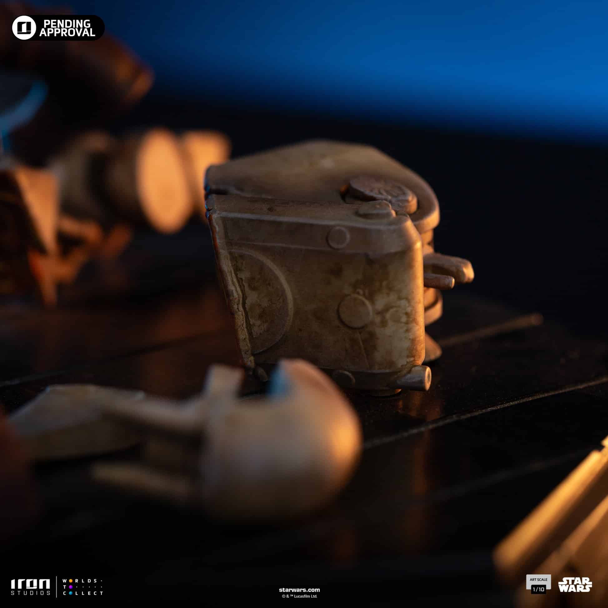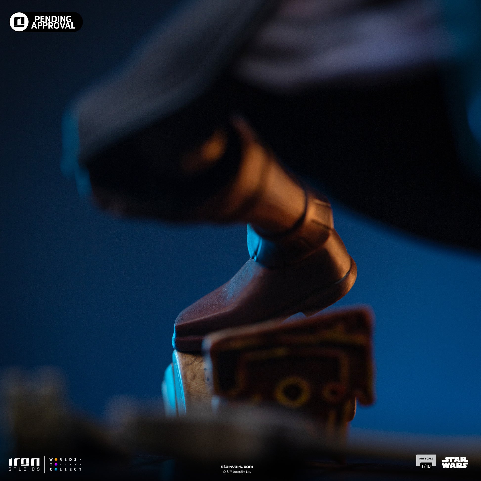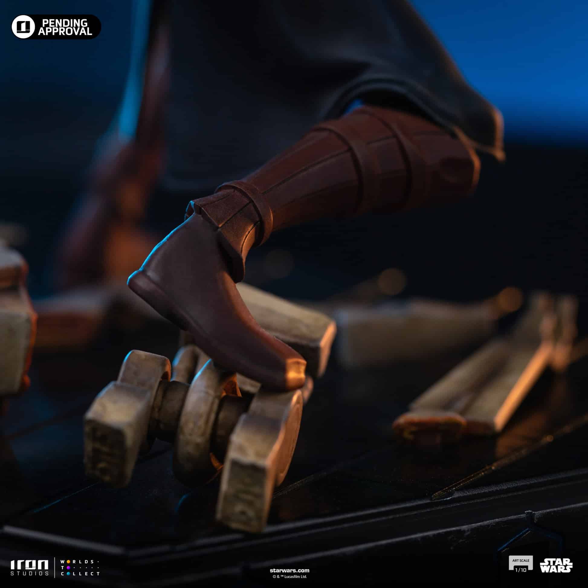 Gefertigt wird die Statue aus hochwertigem Resin. Sie wird vollständig von Hand bemalt und zeigt die typische Qualität, die Iron Studios bei Star Wars Fans so beliebt macht. Die Statue ist etwa 19 Zentimeter hoch, 18,8 Zentimeter breit und 16,1 Zentimeter tief. Sie wiegt rund 400 Gramm.