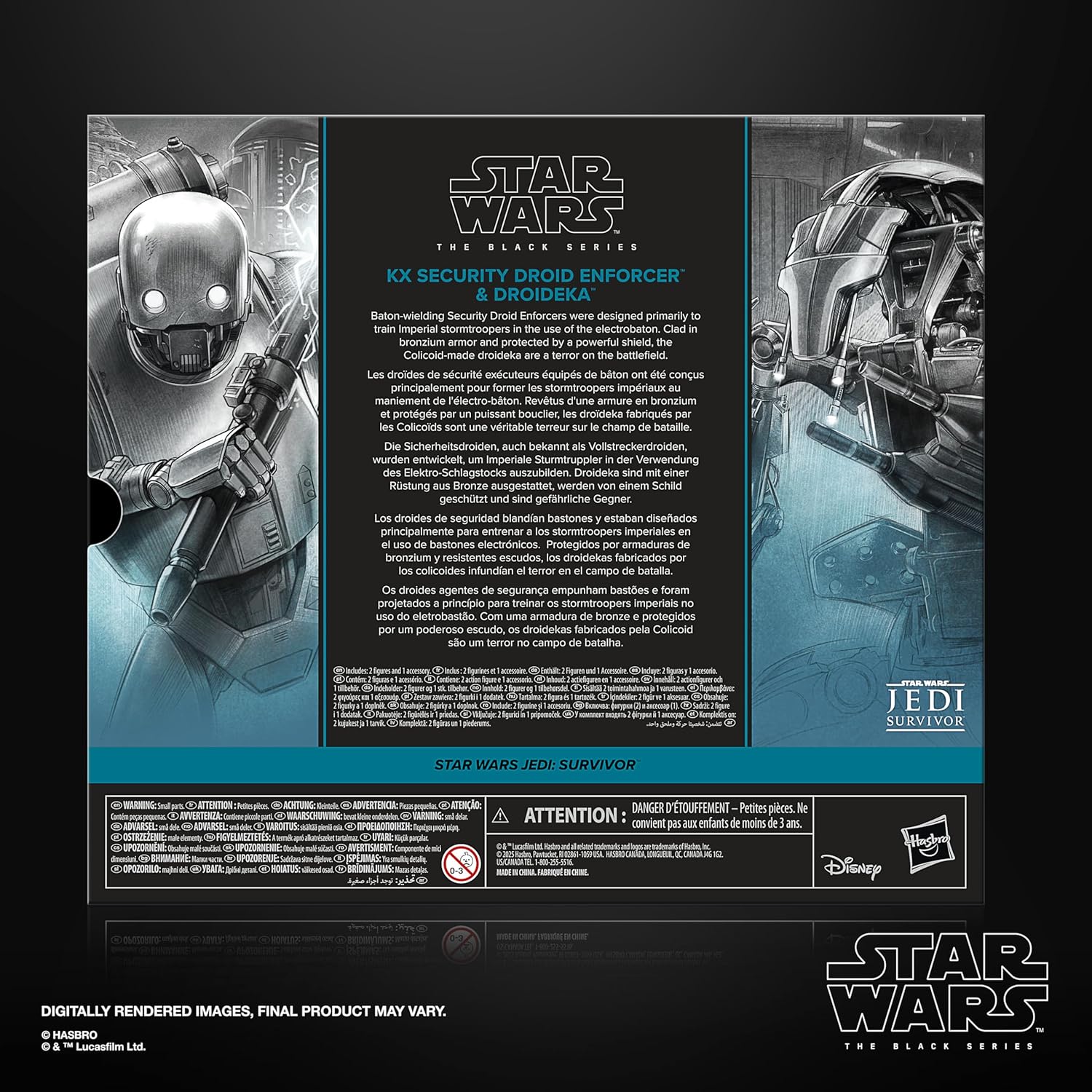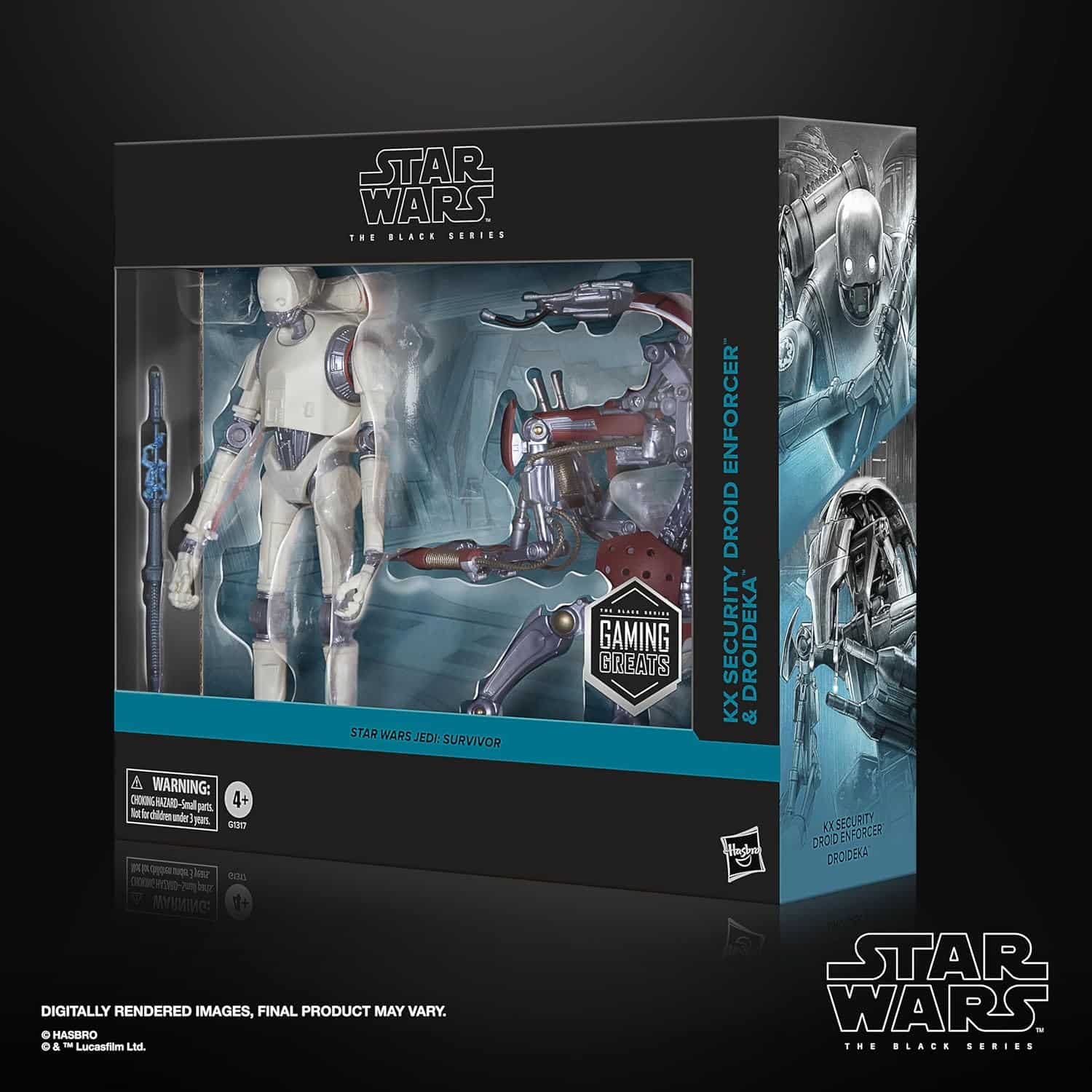Originalbeitrag vom 06. Mai 2025: Mit einem neuen Doppelpack aus KX Security Droid Enforcer und Droideka bringt Hasbro zwei weitere Black Series 6″-Figuren aus Jedi: Survivor in die Gaming Greats -Reihe. Beide Droiden basieren auf bereits veröffentlichten Formen und wurden für dieses Set neu lackiert.