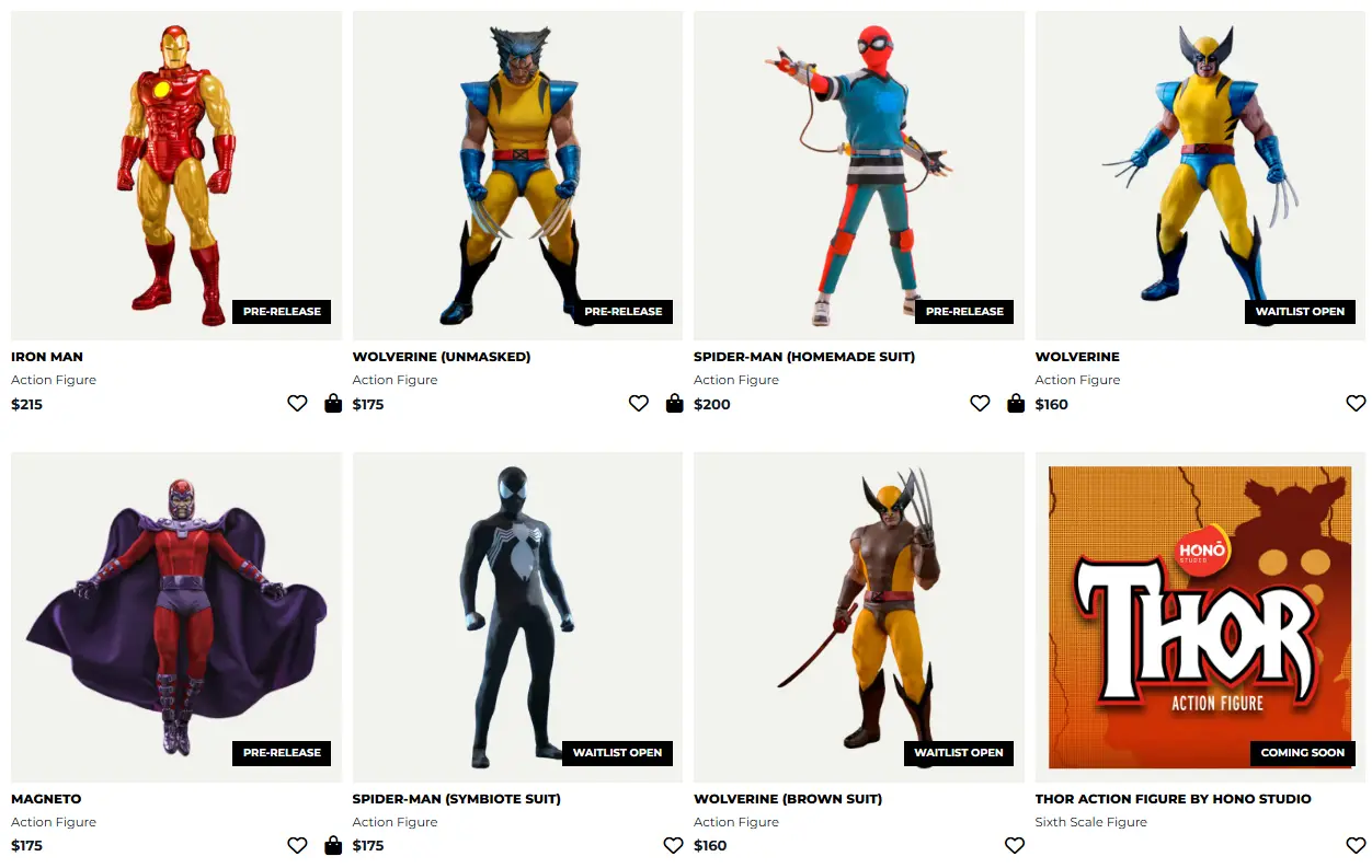 Im Gegensatz zu Hot Toys verzichtet HONŌ Studio jedoch auf reale Abbilder der Charaktere und umfangreiches Zubehör. Stattdessen setzt man auf Comic- und Animations-Umsetzungen der verschiedenen Franchises. Dadurch können die sogenannten 1/6th Scale Action Figures teilweise unter 200,00 $ angeboten werden und sprechen eine neue Gruppe von Sammlerinnen und Sammlern an.