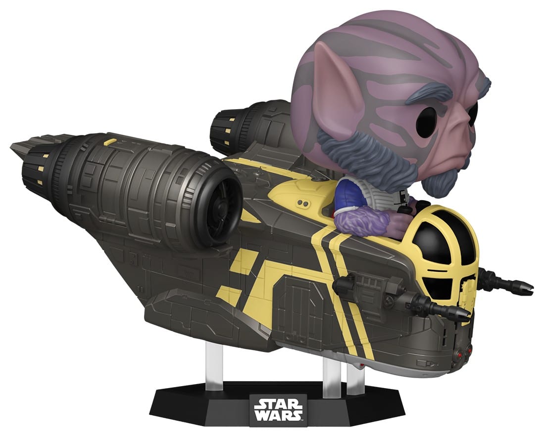 In der Rides-Reihe setzt Funko auf Zeb Orrelios am Steuer der Razor Crest sowie auf den Mandalorianer und Grogu in einem Imperial Remnant AT-RT.