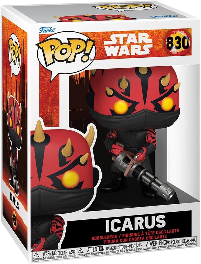 Abgerundet wird das Set durch zwei treue Weggefährten beziehungsweise Handlanger Mauls. Mit Rook Kast (Nummer 829) kehrt eine bekannte mandalorianische Kriegerin zurück, deren Rüstung die typischen roten Markierungen des Schatten-Kollektivs trägt. Neu im Team ist hingegen Icarus (Nummer 830). Dieser rote Zabrak wird in der Serie von Fan-Liebling Steve Blum synchronisiert und führt eine gewaltige Rotations-Blasterkanone ins Feld.