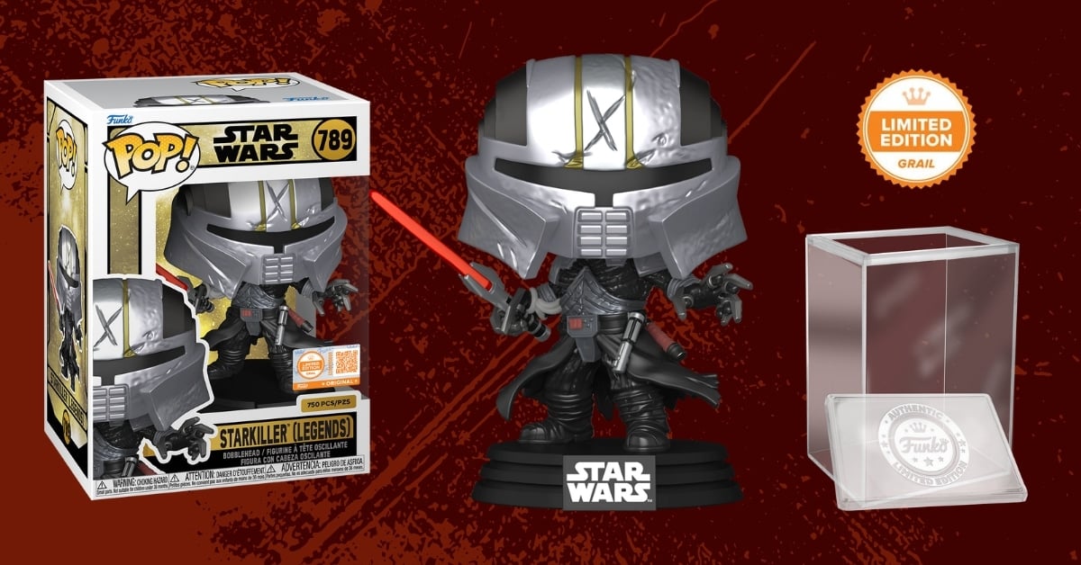 Ein exklusiver Funko POP! Starkiller (Legends) erscheint am 08. August 2025 in einer streng limitierten Auflage von 750 Stück und ist damit der erste Star Wars-Charakter, der offiziell mit dem neuen „Grail“-Sticker erscheint – einer von insgesamt acht neuen Seltenheitsstufen im überarbeiteten Limited Edition-System.