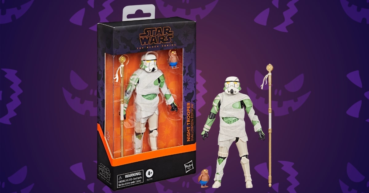 Im Rahmen der sogenannten Walmart Collector Con ist in den USA vor wenigen Stunden die Vorbestellung für den im Juni angekündigten Halloween Night Trooper aus Hasbro’s Black Series gestartet. Somit haben wir nun endlich auch mehr offizielles Bildmaterial, vor allem von der Box.
