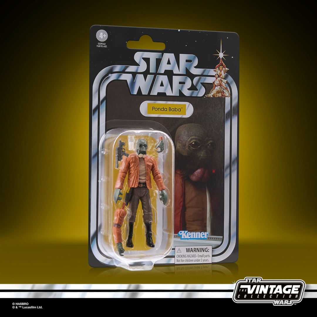 Fans der Actionfiguren im Maßstab 1:18 dürfen sich über drei Neuankündigungen freuen. Momaw Nadon (Hammerhead) und ein Imperial Armored Commando erscheinen als Deluxe-Varianten auf einer größeren Karte und mit zusätzlichem Zubehör. Außerdem wird Ponda Baba mit der Nummer VC70 neu aufgelegt. Die Figur bleibt gleich, aber die Karte wurde verändert.