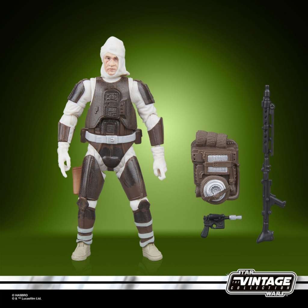 Die Vintage Collection erhält ein Update mit dem Re-Release von Kopfgeldjäger Dengar (VC01). Diese Figur aus „Das Imperium schlägt zurück“ besticht durch eine überarbeitete Gesichtsmodellierung mit deutlich ausgeprägteren Narben. Dengar kommt mit einem DT9-Blaster, einer Pistole samt funktionierendem Holster und einem schweren Versorgungspack. Als besonderes Highlight bietet Hasbro eine Verpackungsvariante VC01A mit alternativem Artwork an.