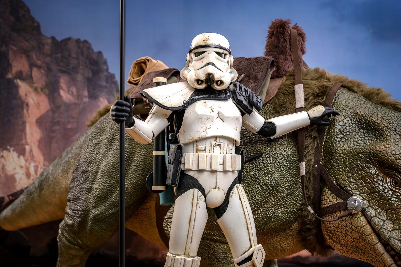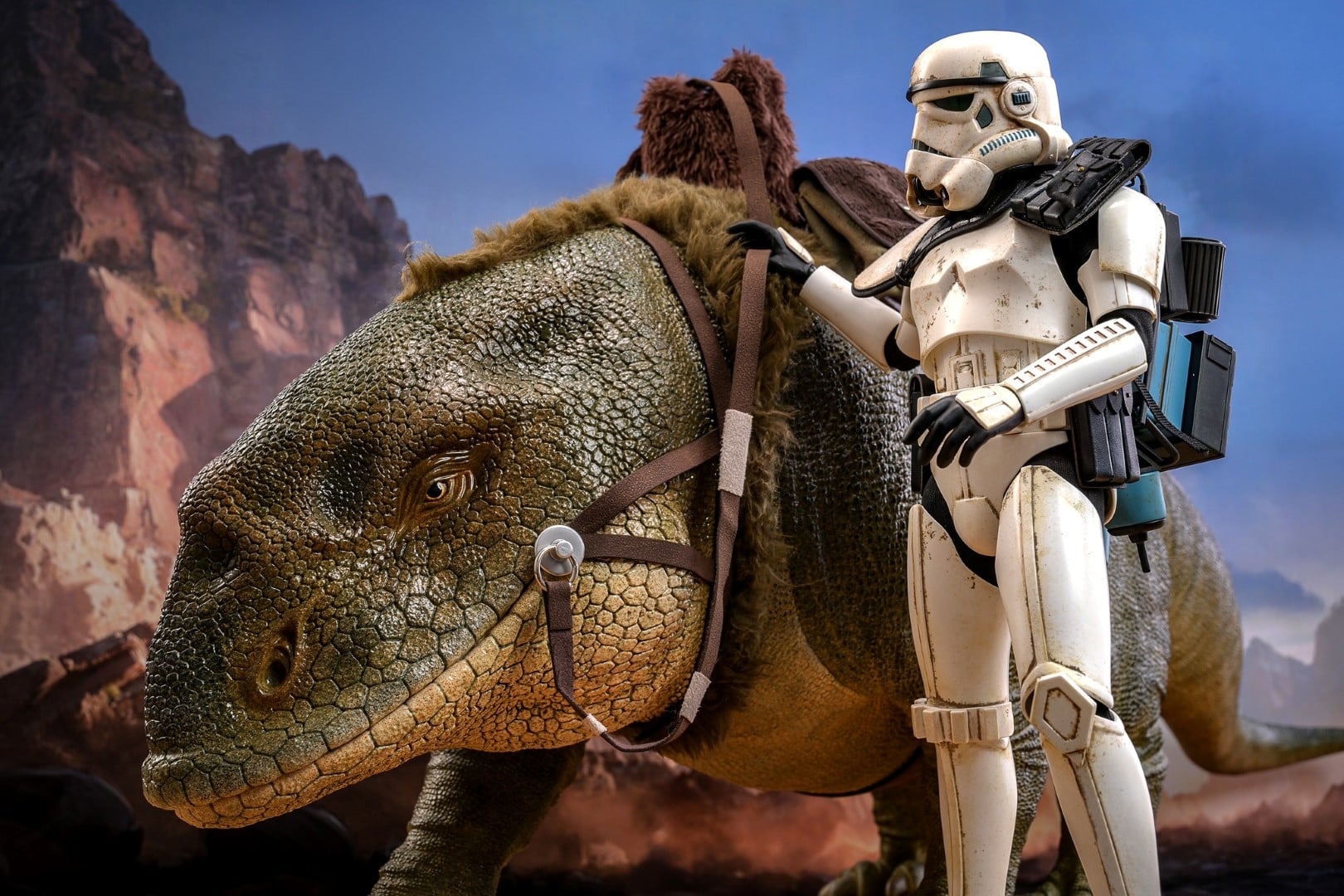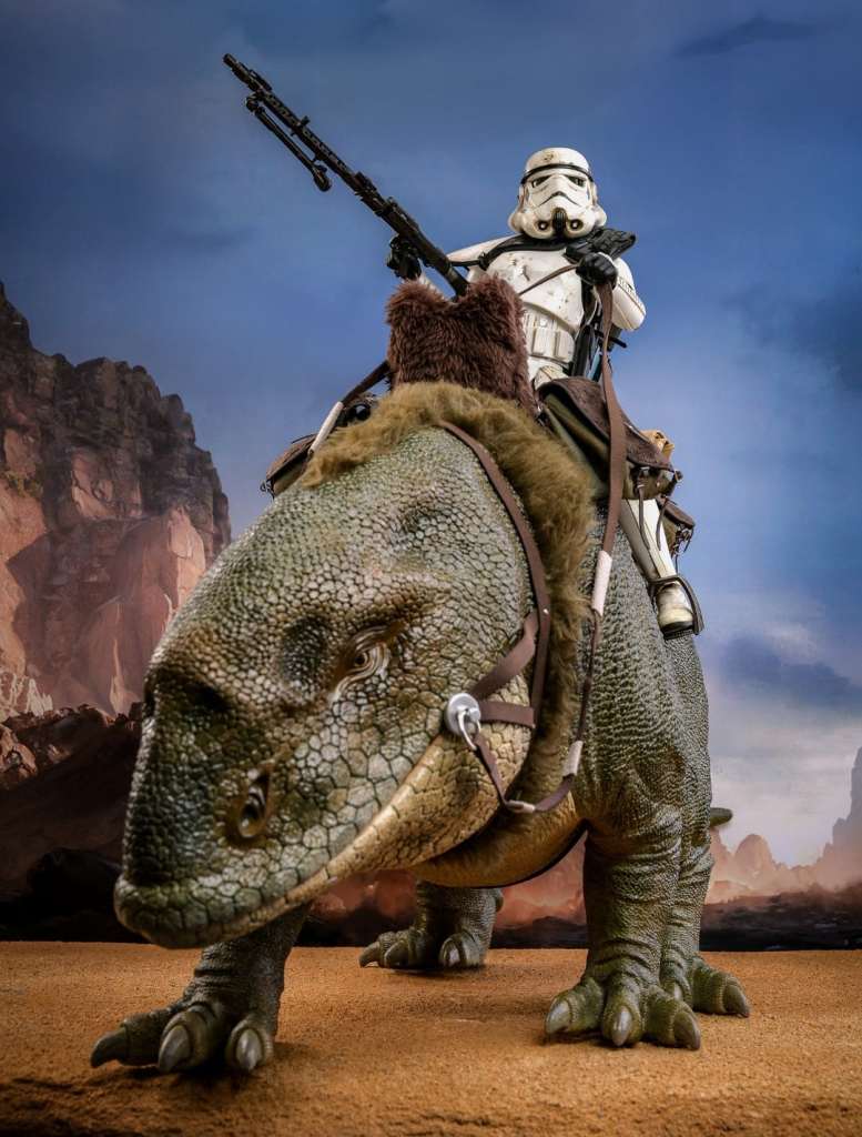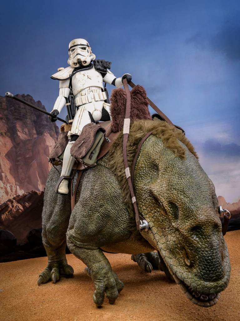 Update, 15.01.2025: Nach fast 17 Monaten seit der Erstankündigung sind heute im Laufe des Tages die sogenannten Blogger-Fotos für das Sandtrooper Sergeant & Dewback-Set von Hot Toys veröffentlicht worden. Diese Fotos sind zwar immer etwas nachbearbeitet, zeigen aber erstmals das finale Produkt aus vielen verschiedenen Winkeln.