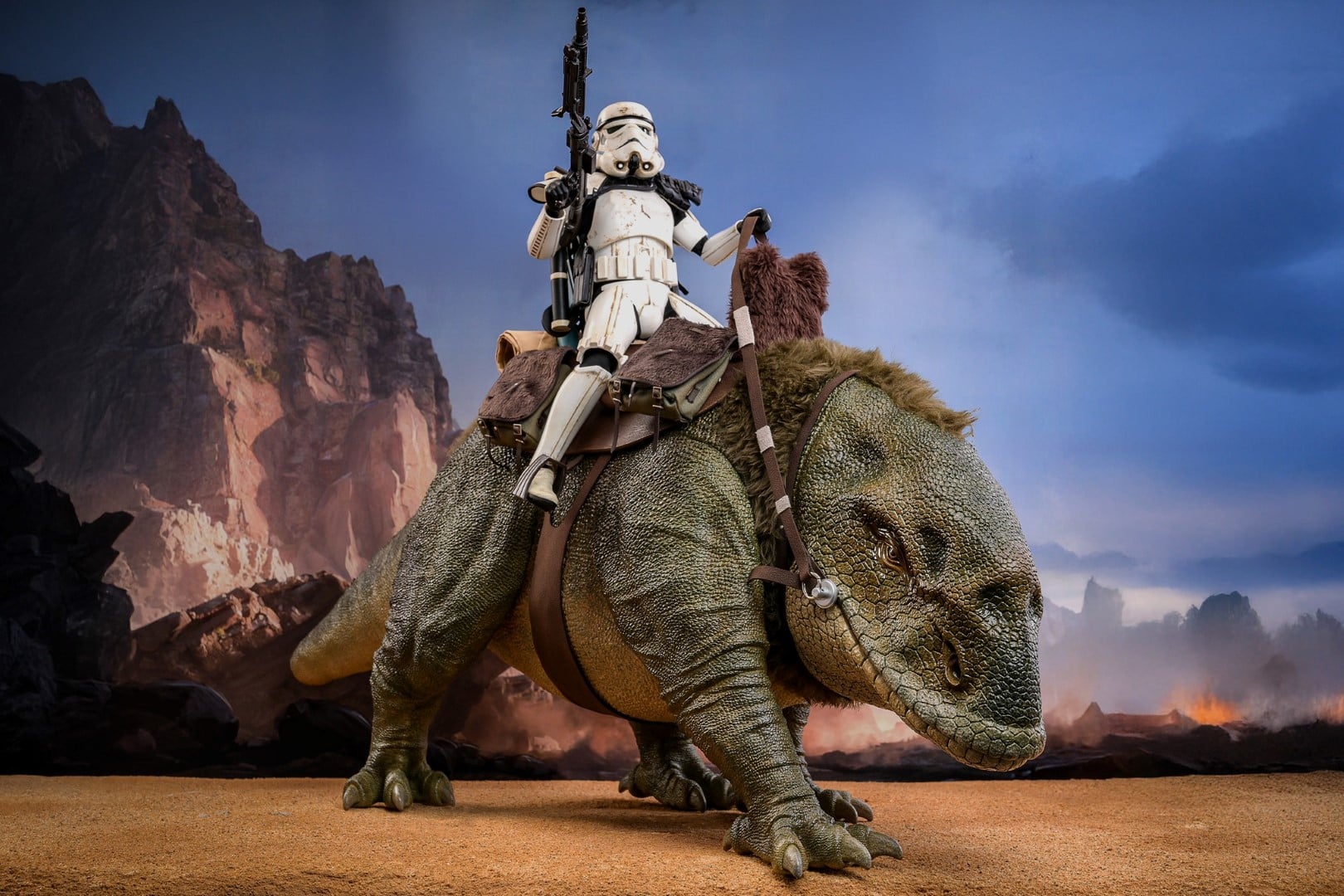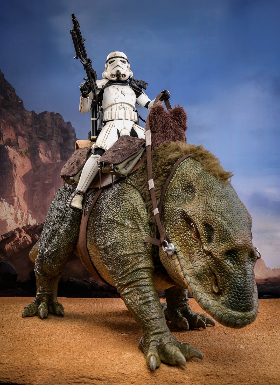 (veröffentlicht auf Starwarscollector.de) : Hot Toys hat heute Morgen insgesamt vier verschiedene neue Star Wars Collectibles im Maßstab 1:6 vorgestellt. Dabei handelt es sich um einen Sandtrooper Sergeant und einen beeindruckenden Dewback in verschiedenen Versionen. Alle Informationen und Bilder haben wir euch nachfolgend einmal zusammengefasst.
