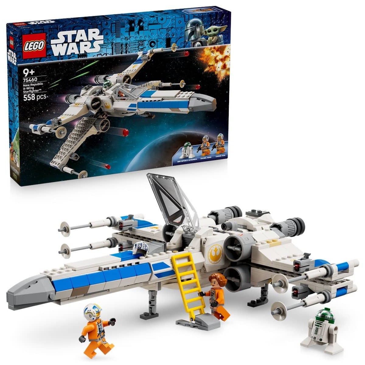 Für Fans der Neuen Republik folgt der New Republic X-Wing Starfighter (75460) mit 558 Teilen für 69,99 Euro. Die Minifiguren in diesem Set glänzen durch eine besonders detaillierte Bedruckung der Pilotenhelme. Neben Colonel Ward sind Captain Carson Teva und ein New Republic Astromech enthalten.