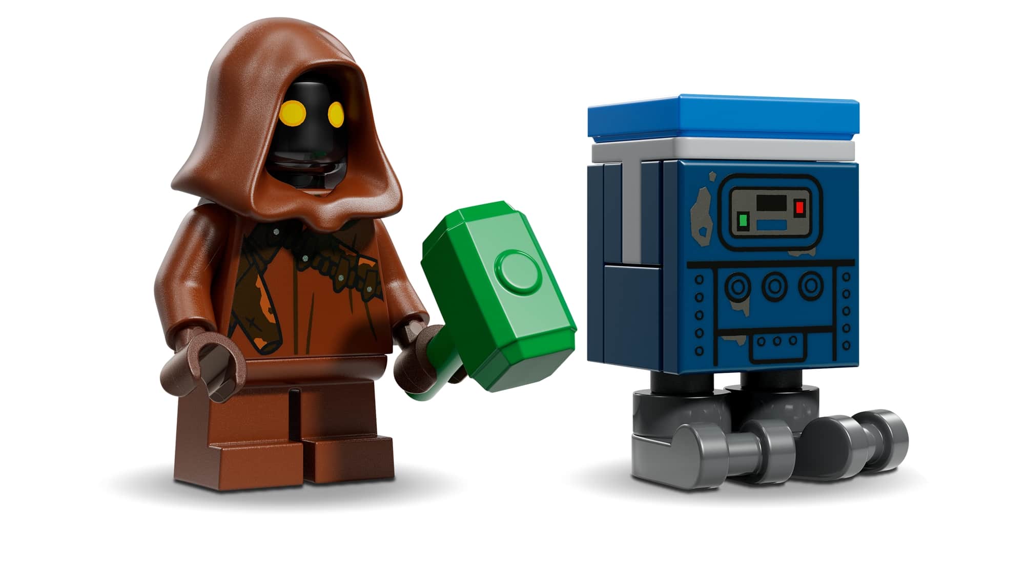 Den Einstieg in diese Erweiterungswelle bildet Luke’s Landspeeder (75420), der mit einer UVP von 39,99 Euro und 215 Teilen den günstigsten Preispunkt markiert. Das Modell konzentriert sich auf die Szenen auf Tatooine und enthält neben dem Speeder auch eine kleine Tankstation-Sektion. Technisch interessant ist hier die Interaktion: Ein Smart Brick kann hier beispielsweise Reparatur- und Tankgeräusche simulieren. Minifiguren-technisch liefert das Set neben einem Jawa und einem Gonk-Droiden auch eine Smart-Variante von Luke Skywalker, die vom System erkannt wird.