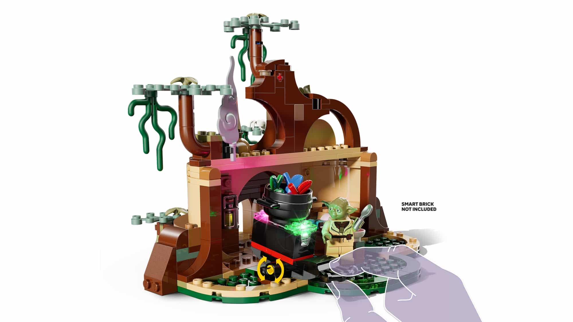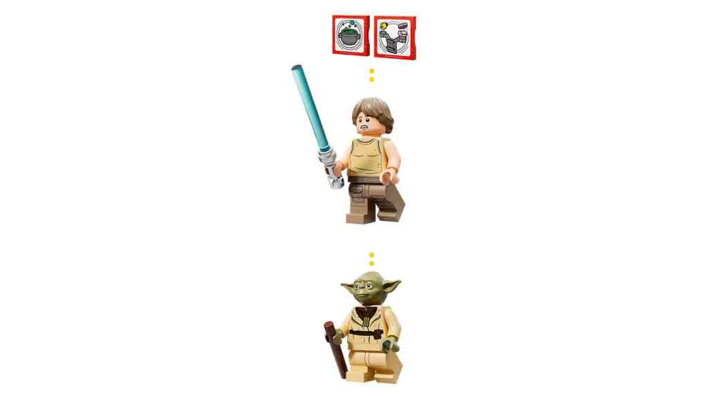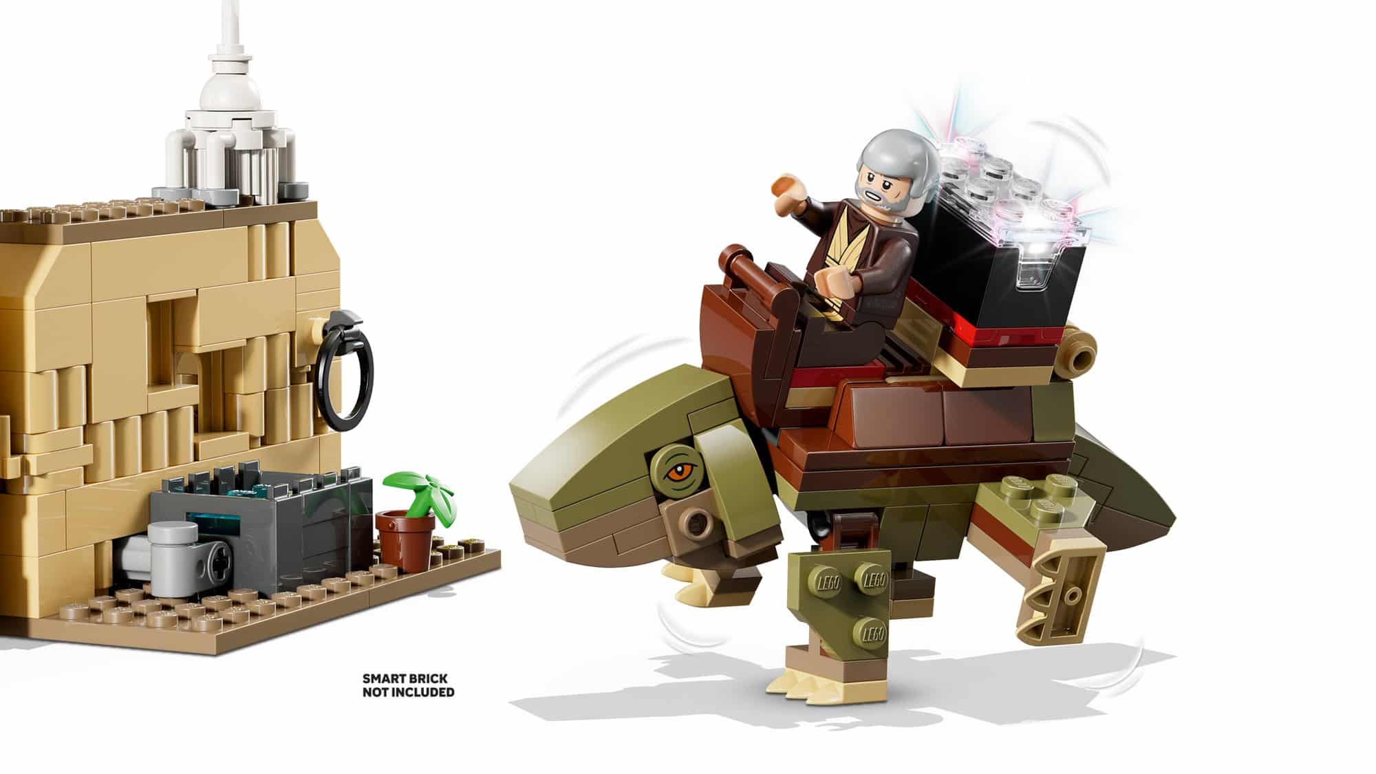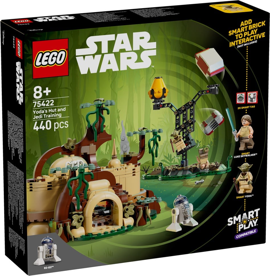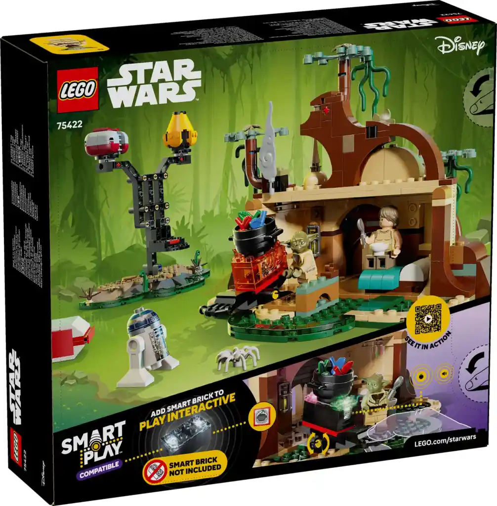 Deutlich komplexer wird das Spielgeschehen auf Dagobah mit Yoda’s Hut and Jedi Training (75422). Für 69,99 Euro erhalten Käufer 440 Teile, die eine aufklappbare Hütte und einen Trainingsparcours für Luke darstellen. Das Highlight dürften hier die Sounds sein: Der Smart Brick soll die Atmosphäre des Sumpfplaneten sowie die Trainingssequenzen akustisch untermalen. Das Set liefert mit Smart Yoda und Smart Luke gleich zwei interaktive Figuren sowie R2-D2.