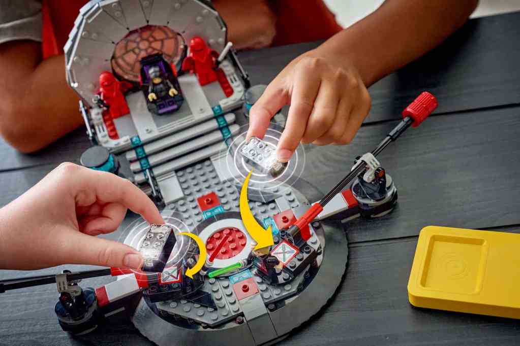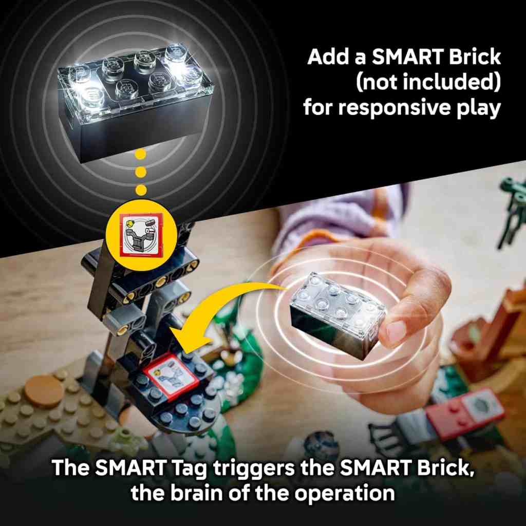 Interaktive Elemente: Tags dienen nicht nur der Fahrzeugidentifikation, sondern auch als Auslöser für Umgebungseffekte. In den neuen Star Wars Sets repräsentieren Tags beispielsweise Geschütztürme, Hangars oder Reparaturstationen. Fliegt das Schiff (mit Smart Brick) nahe an einen „Geschützturm“-Tag, registriert das System dies und spielt Kampfgeräusche ab.