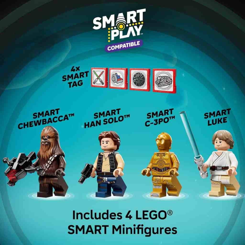 Integrierte Elektronik: Auch die Minifiguren enthalten einen RFID-Chip, der ihre „Persönlichkeit“ speichert. Wenn eine Smart Minifigur (z.B. Luke Skywalker) in das Cockpit gesetzt wird, erkennt der Smart Brick dies und schaltet spezifische Dialogzeilen oder Themenmusik frei.