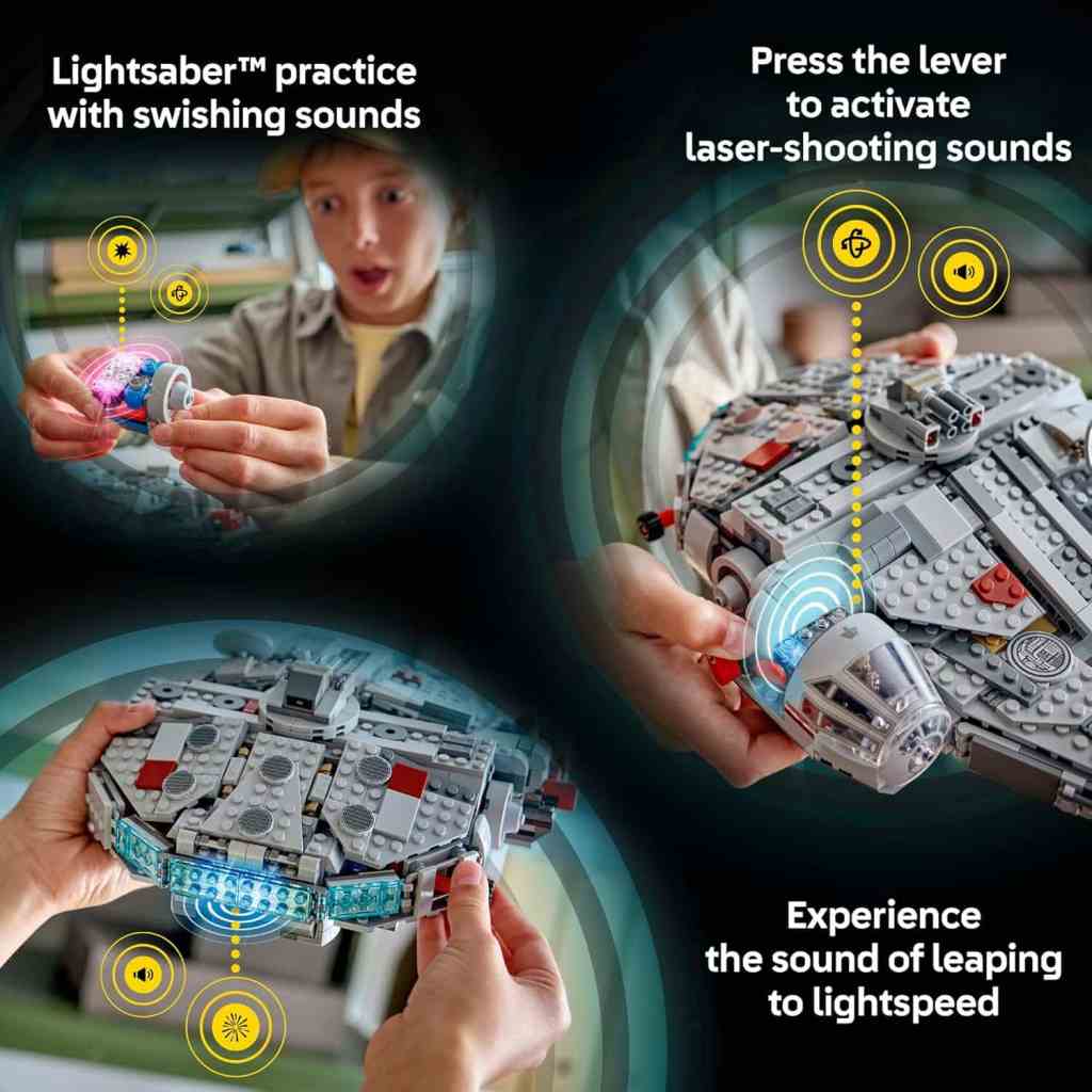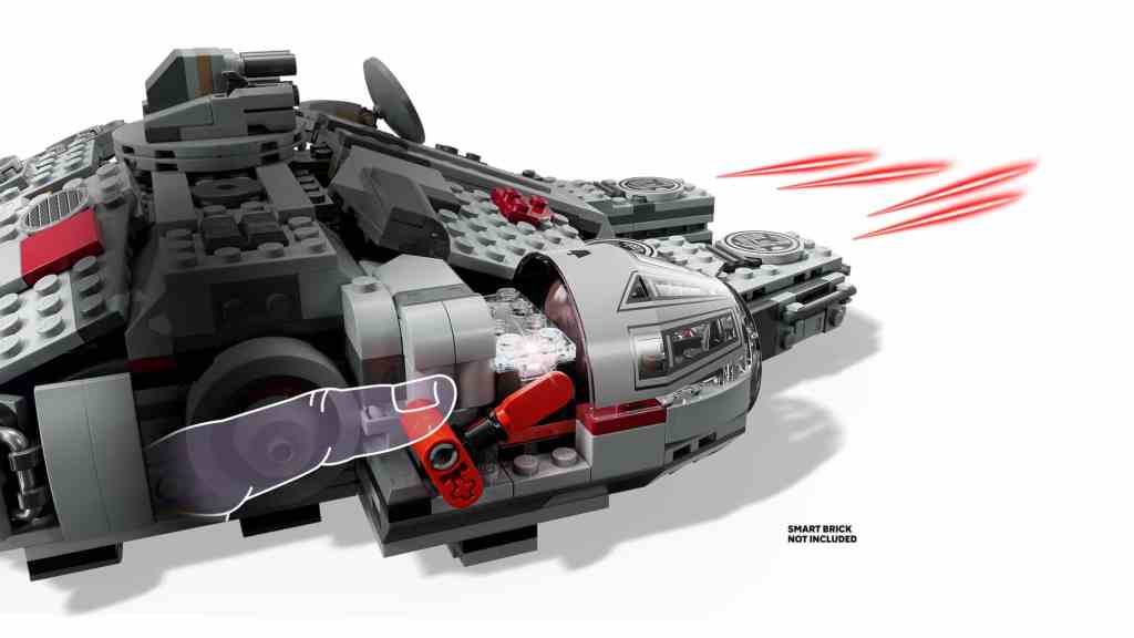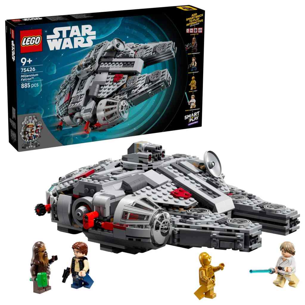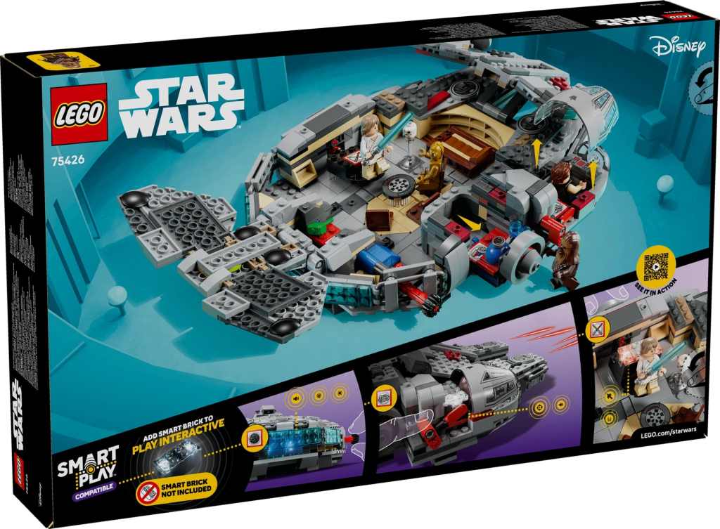 An der Spitze dieser Erweiterungswelle steht der Millennium Falcon (75426). Mit einer UVP von 99,99 Euro und 885 Teilen ist er das größte der „Compatible“-Sets. LEGO verzichtet hier bewusst auf einen beiliegenden Smart Brick, um den Preis unter der 100-Euro-Marke zu halten, setzt aber voll auf die ikonischen Soundeffekte des Schiffes – vom Hochfahren des Hyperantriebs bis zu den Geschütztürmen. Die Crew besteht aus vier Smart-Minifiguren: Han Solo, Chewbacca, Luke Skywalker und C-3PO, die jeweils eigene Reaktionen im System auslösen können.