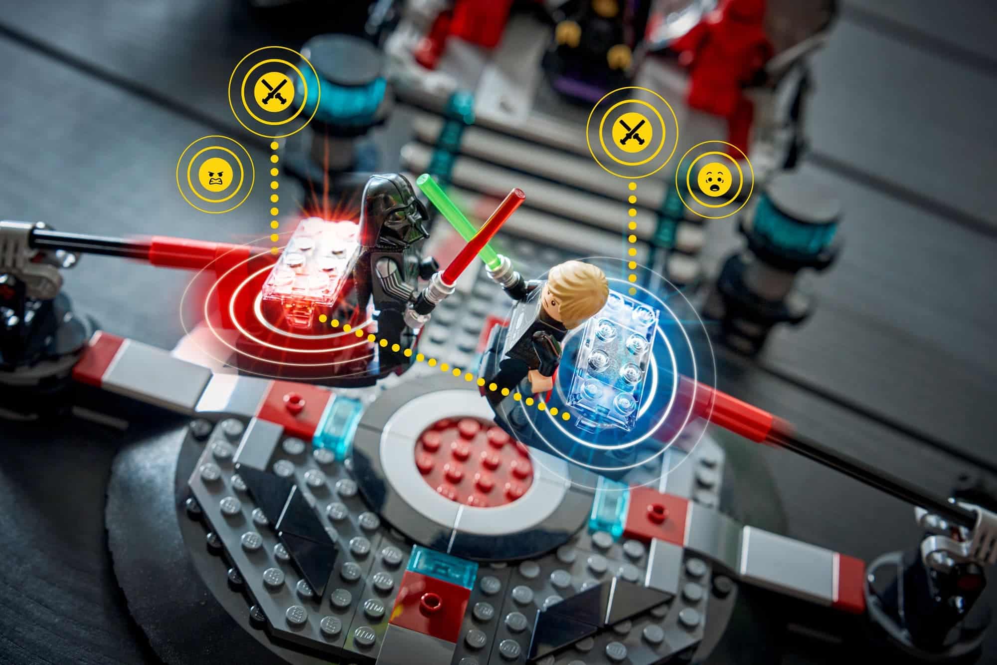 NPM-Technologie: Das „Neighbor Position Measurement“ System erlaubt es mehreren Smart Bricks, ihre relative Position zueinander zu bestimmen. Ein Stein „weiß“ nicht nur, dass ein anderer Stein im Raum ist, sondern auch, wie weit er entfernt ist und in welche Richtung er zeigt. Dies ist entscheidend für Spielszenarien wie Duelle: Das System erkennt, wenn zwei Raumschiffe aufeinander zufliegen oder sich Minifiguren für einen Lichtschwertkampf gegenüberstehen.