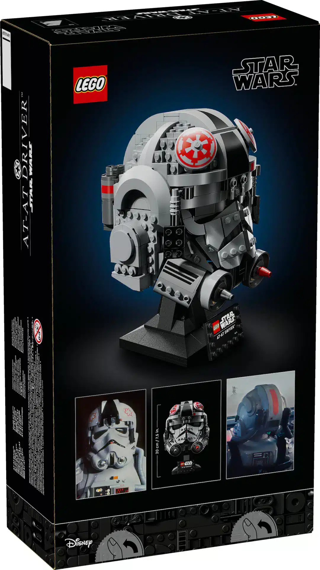 Der AT-AT Driver-Helm besteht aus insgesamt 730 Bausteinen, enthält, wie für die Serie üblich, keine Minifigur und wird auf einem Sockel mit Namensschild präsentiert. Er ist der zwölfte Helm der Reihe und der erste Helm seit Princess Leia (Boushh) im Jahr 2023.