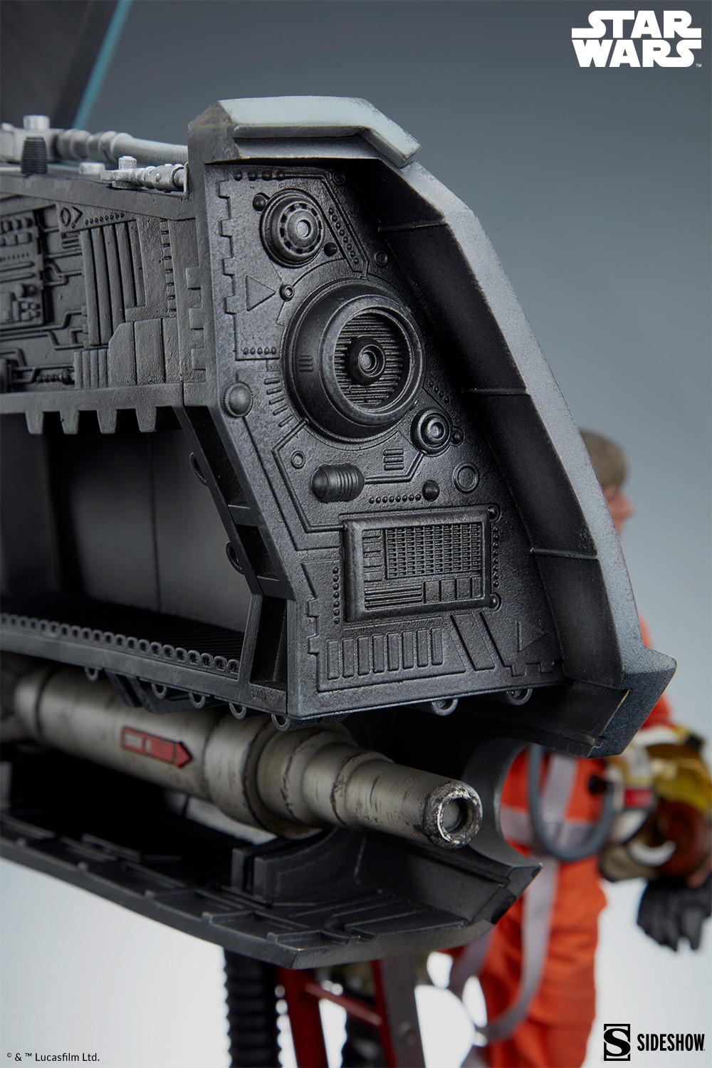 The Luke Skywalker™ & X-Wing: Red Five, Standing By Premium Format™ Figure also features a fully sculpted section of Luke’s T-65B model starfighter attached to the ladder and robust black fuel tubing. No detail has been spared in recreating this section of the ship’s complex armored interior, which starts at the vessel’s nose and includes a portion of the seat, targeting computer, and flight control panels. Reminiscent of the very first X-wing designs in Star Wars, the clear cockpit window can be positioned either raised or down in order to create your ideal display. With this cockpit feature fully extended the statue measures up to 30″ tall. A reinforced internal metal rod supports the entire ship structure — from the interior of the base to the hull — in an incredible, gravity-defying feat.