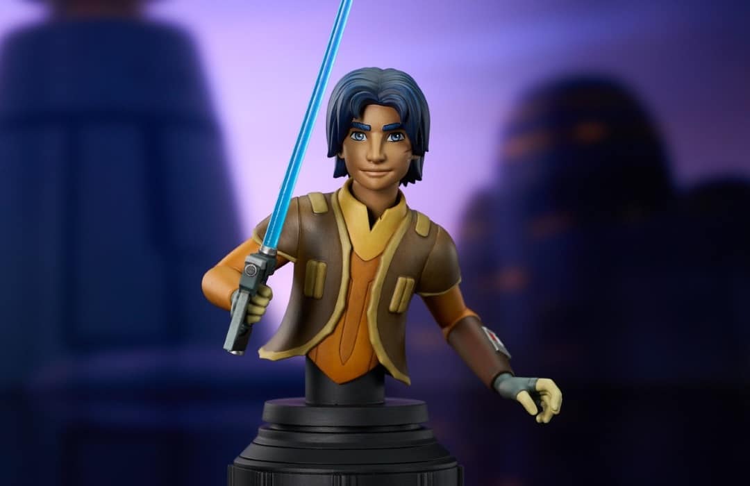 Heute im Laufe des Tages wurde eine neue Ezra Bridger Büste für die sogenannte Animated Mini Busts -Reihe im Onlineshop von Gentle Giant veröffentlicht. Die Neuankündigung basiert auf seinem Auftritt in der beliebten Animationsserie Star Wars: Rebels und zeigt den Waisen mit seinem Lichtschwert auf einer runden Base.