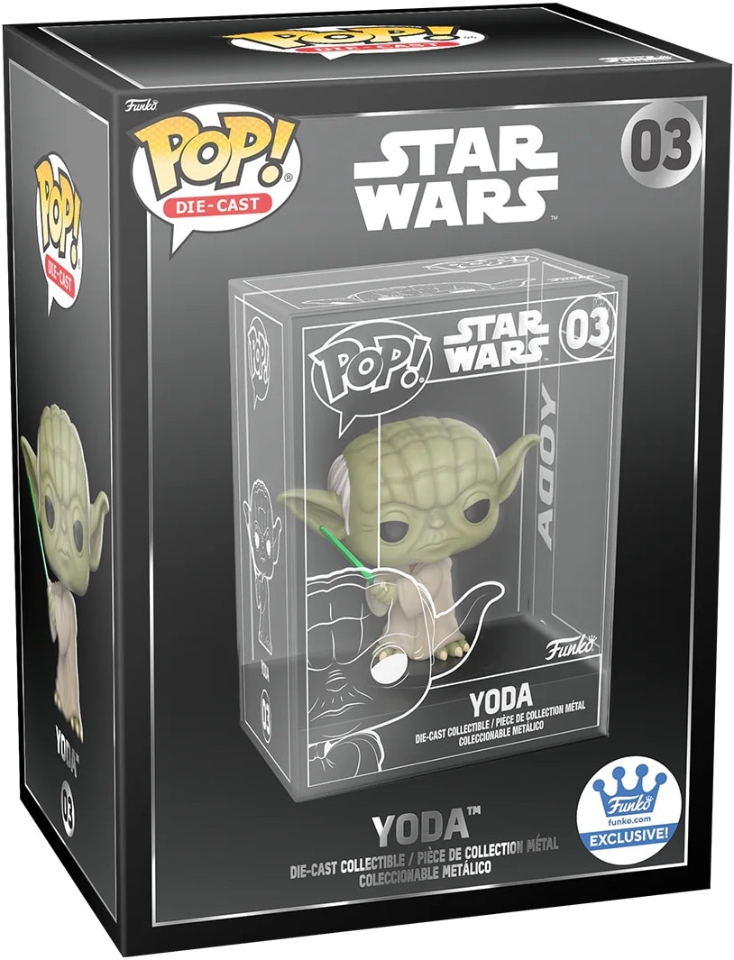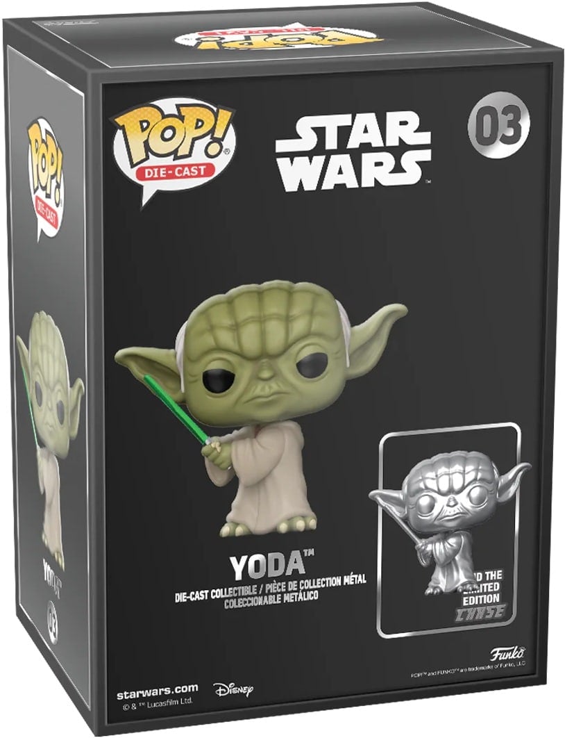 Vor wenigen Tagen wurde mit Yoda die Nummer 03 für die POP! Die-Cast-Reihe vorgestellt. Die Neuheit kostet stolze 60,00 € und soll zum weltweiten Star Wars-Day am 04. Mai lieferbar sein. Das Listing im Onlineshop ist bereits verfügbar, die Vorbestellung steht jedoch noch aus.