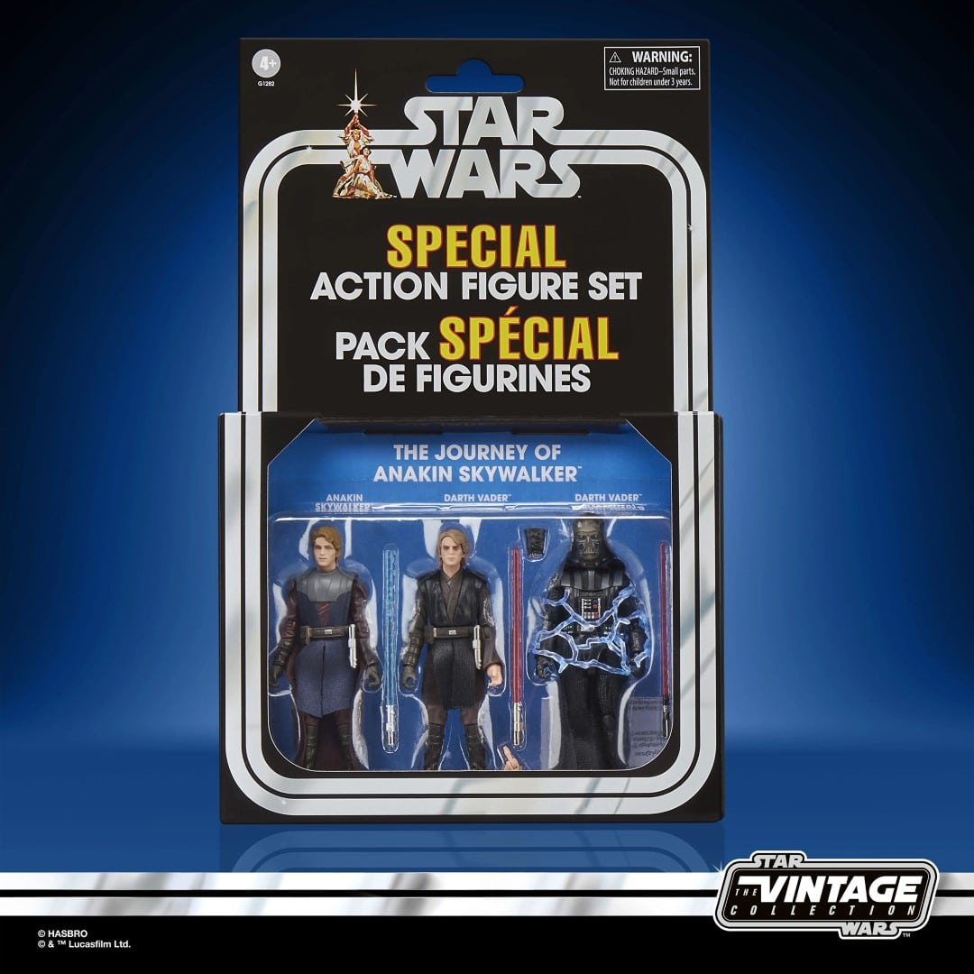 Originalbeitrag vom 17.12.2024: Hasbro feiert Anakins dramatische Entwicklung zum Sith-Lord mit einem brandneuen 3-Pack für die Star Wars Vintage Collection . Das „The Journey of Anakin Skywalker“-Set zeigt Anakin in drei entscheidenden Phasen seiner Reise: vom Jedi-Ritter in den Klonkriegen bis hin zu Darth Vader.