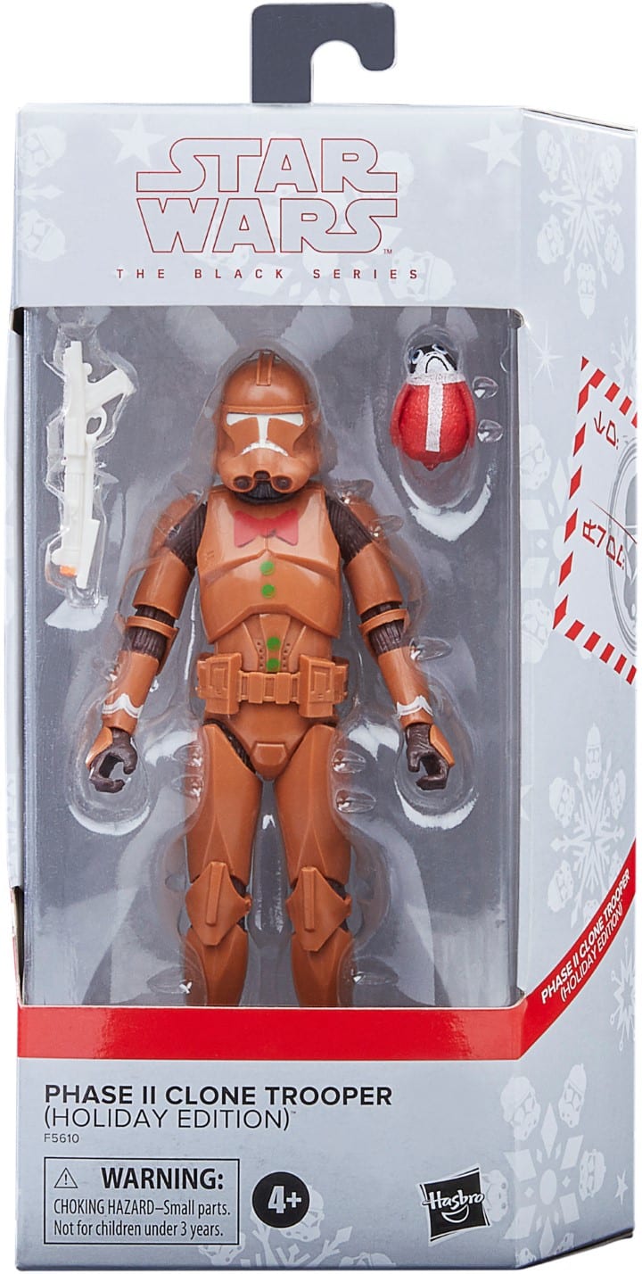 Die Black Series 6″ Holiday Edition-Figuren wurden erstmals zur Weihnachtssaison 2020 produziert. Dabei handelt es sich um verschiedene 6″-Figuren, die in einem sehr weihnachtlichen Gewand mit diversem Zubehör und in schicken Christmas-Boxen produziert wurden.